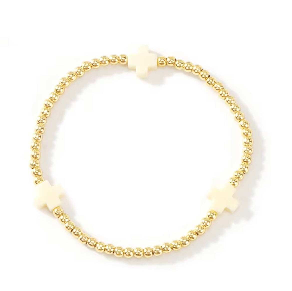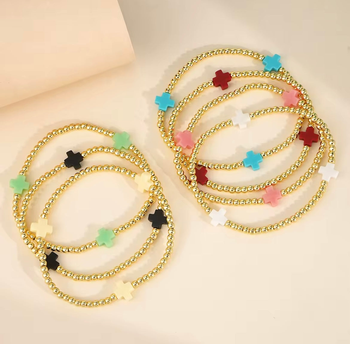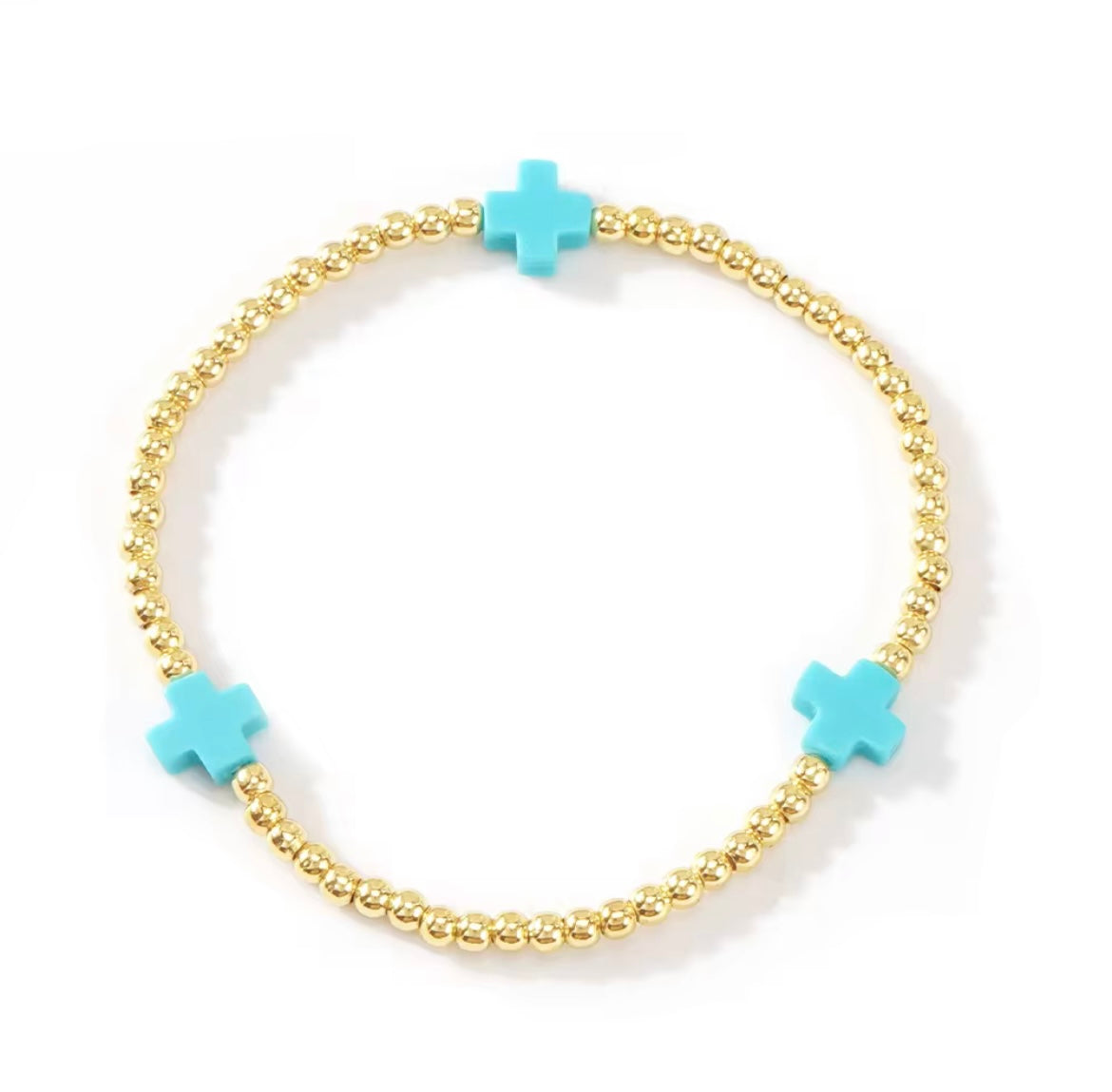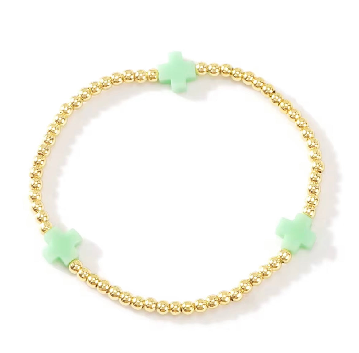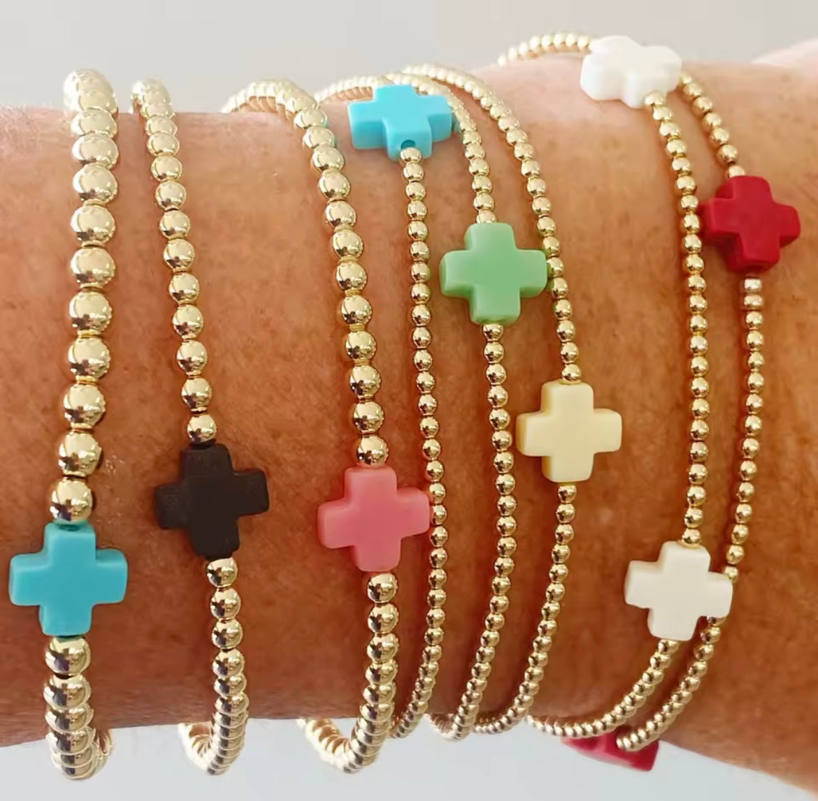 Expertly crafted with 18K gold plating, the Ness and Mae Baby Color Cross Bracelet brings a refined touch of elegance to any outfit. Elevate your look with this timeless, stylish, and sophisticated piece.
