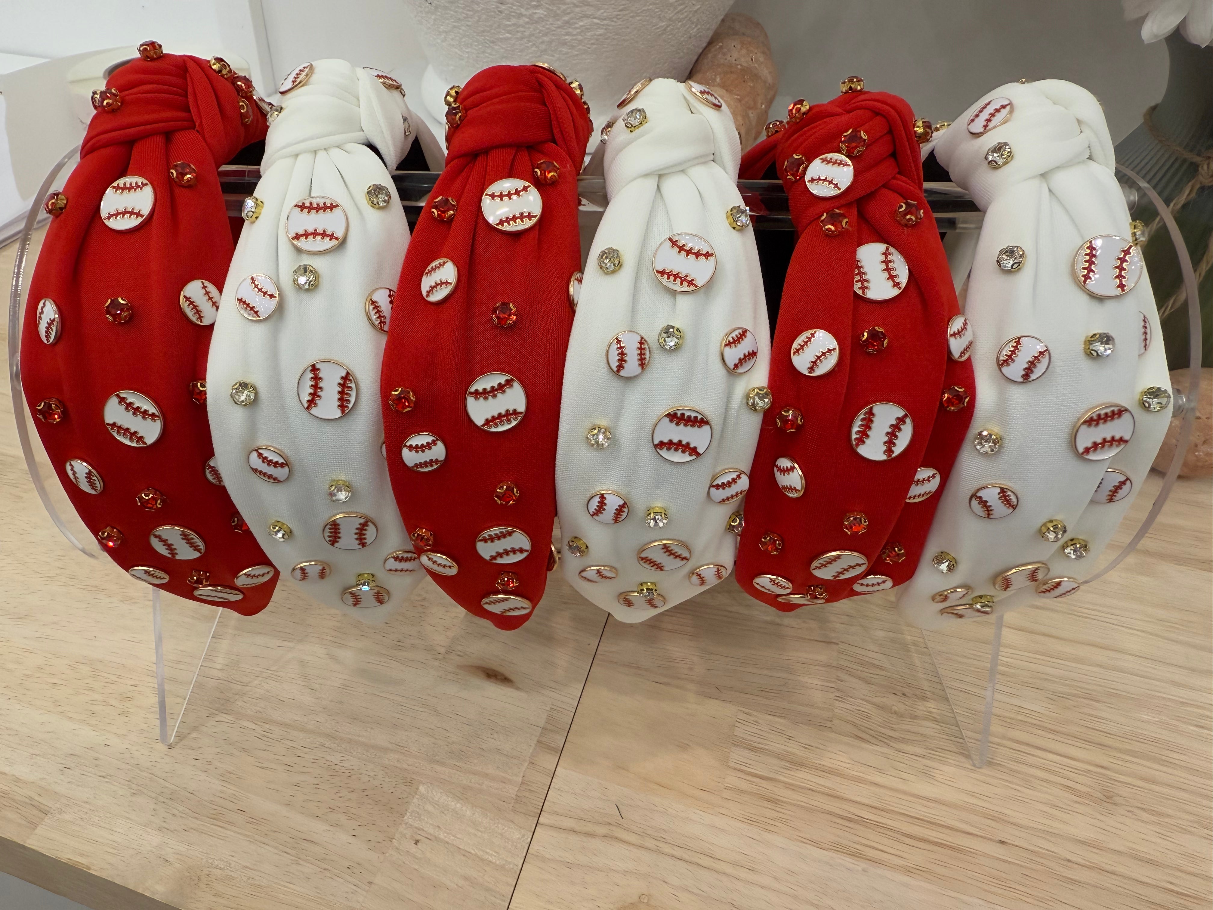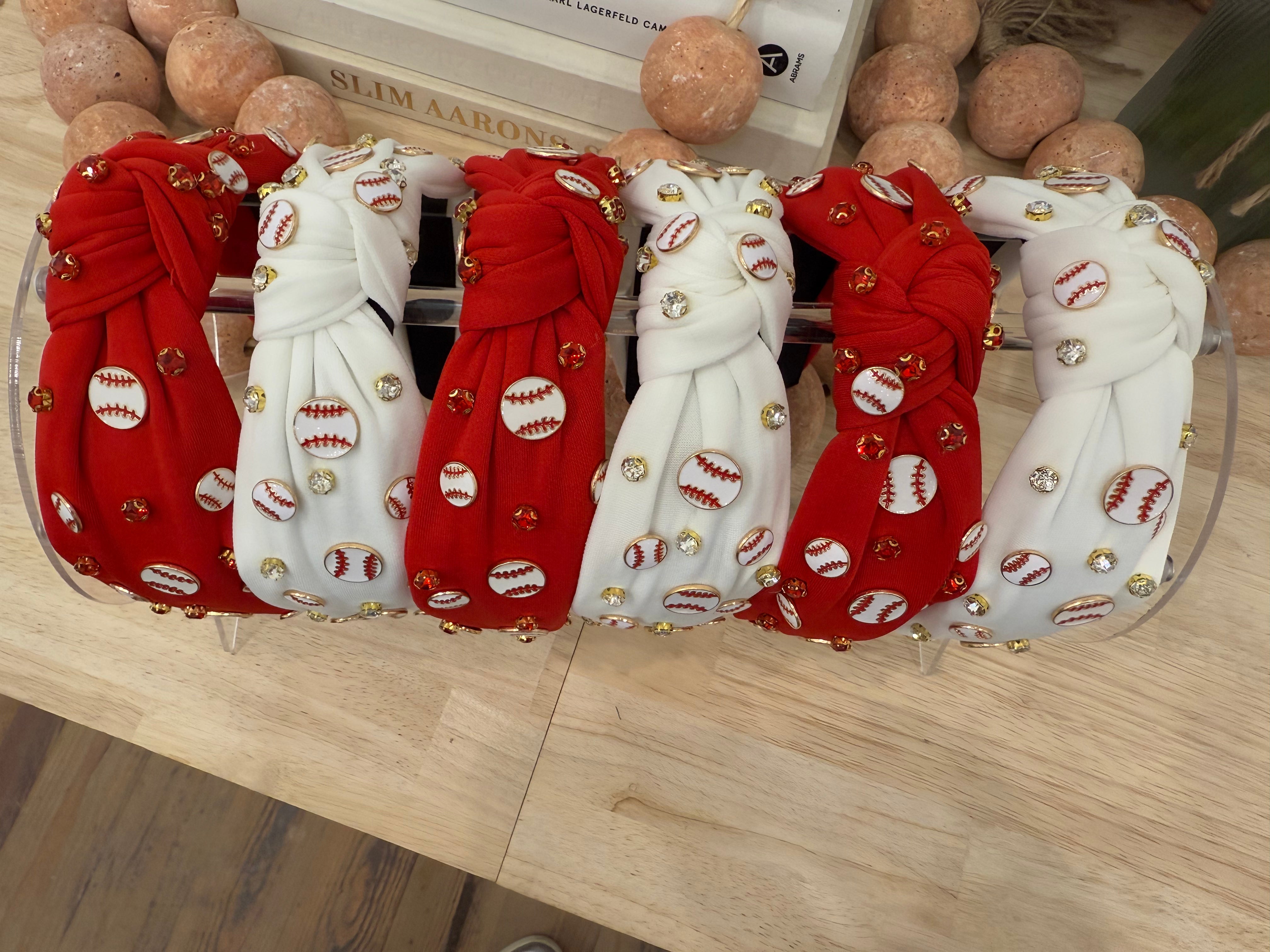 This red and white baseball headband is the perfect accessory for game day. Made with a unique knot design, it provides both style and function with a comfortable fit. Be game day ready with this essential addition to your sports gear.