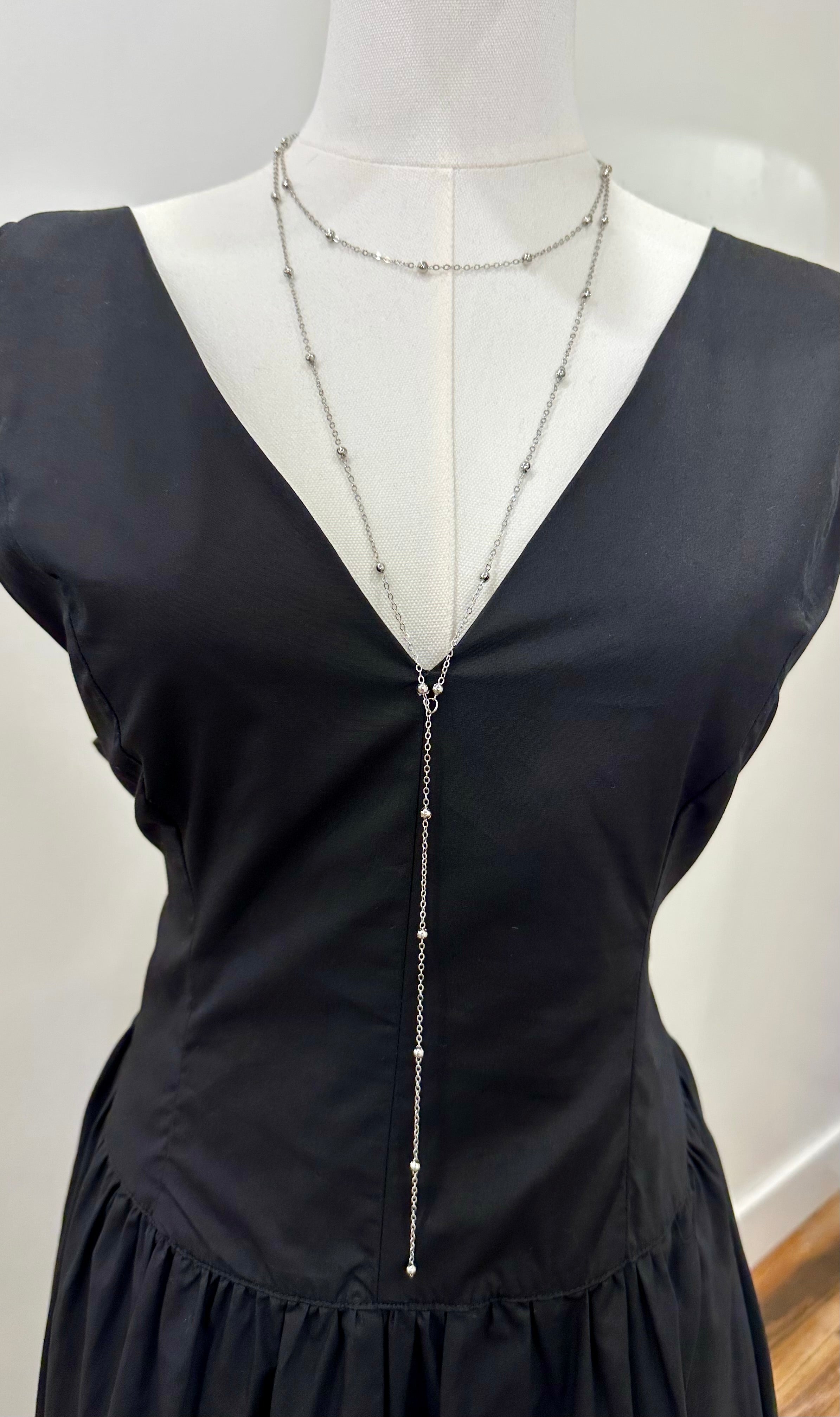 This Beaded Drop Necklace features a layered design, adding an elegant touch to any outfit.