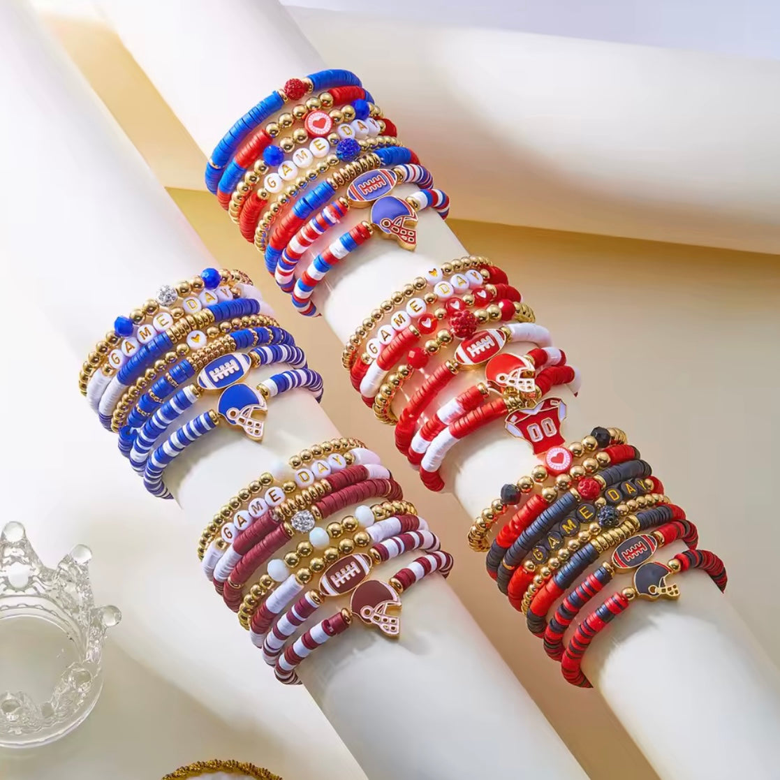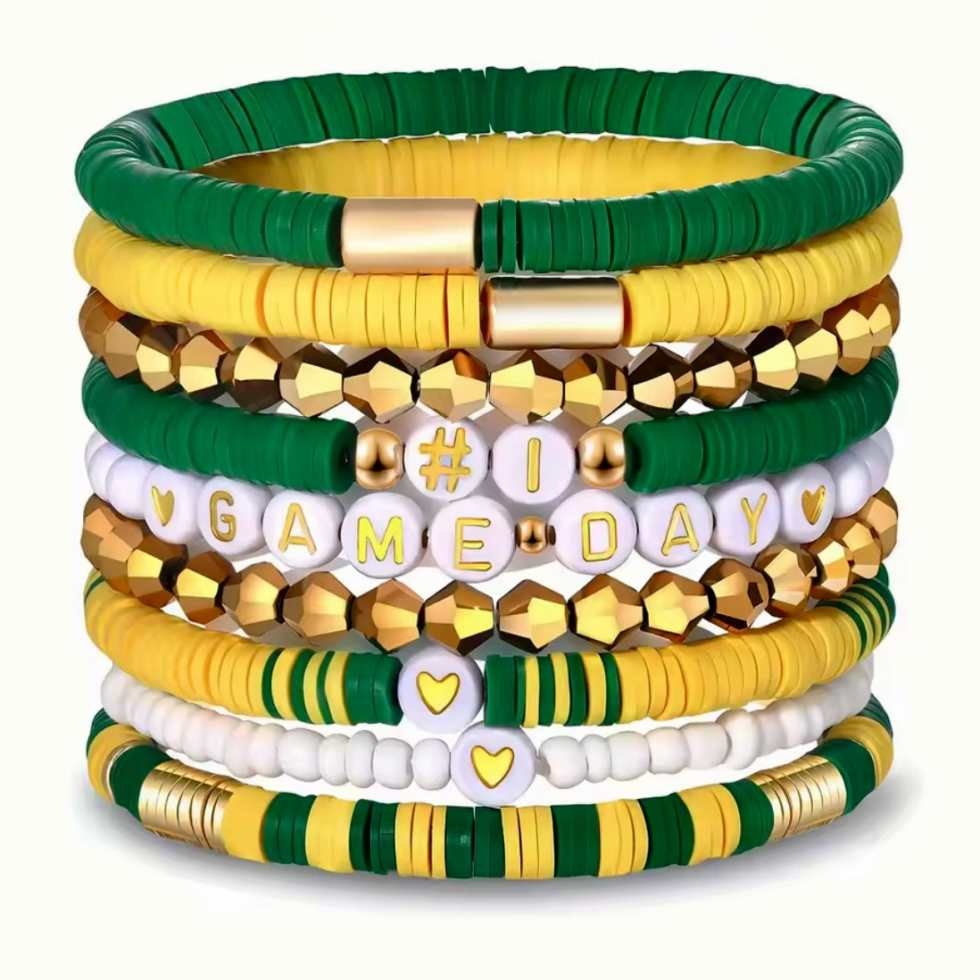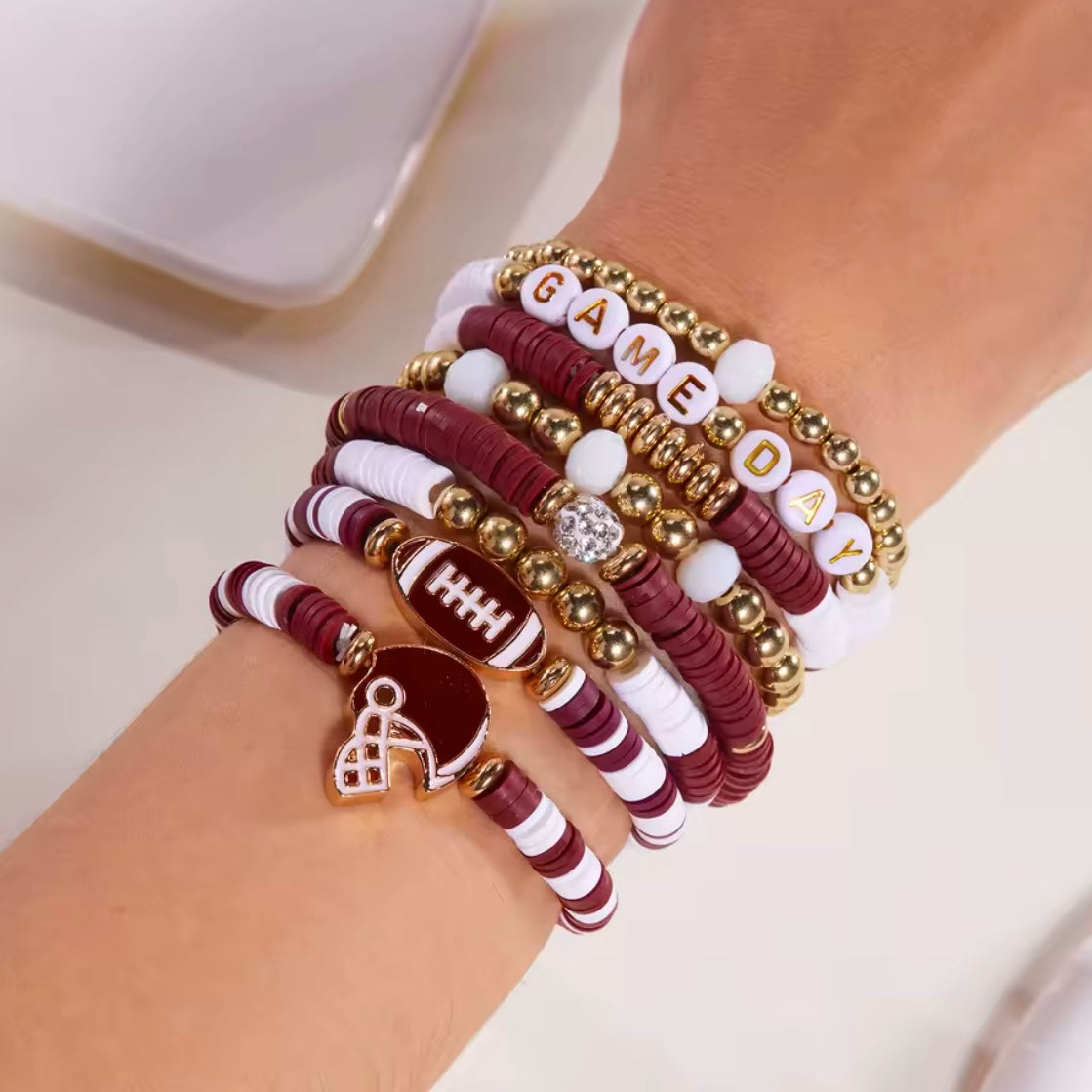 Get ready to show off your school spirit with our Beaded Game Day Bracelet Set! With a maroon, white, and gold color scheme, these 8 bracelets are perfect for adding some flair to your game day outfit. Stand out from the crowd and rep your team with style and charm.