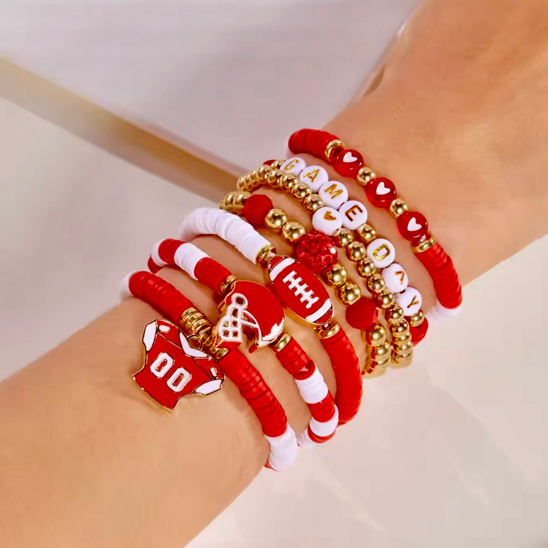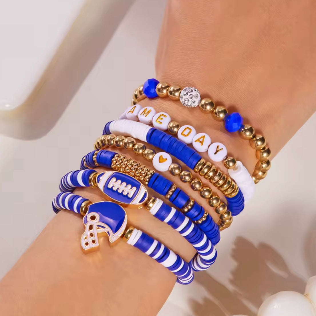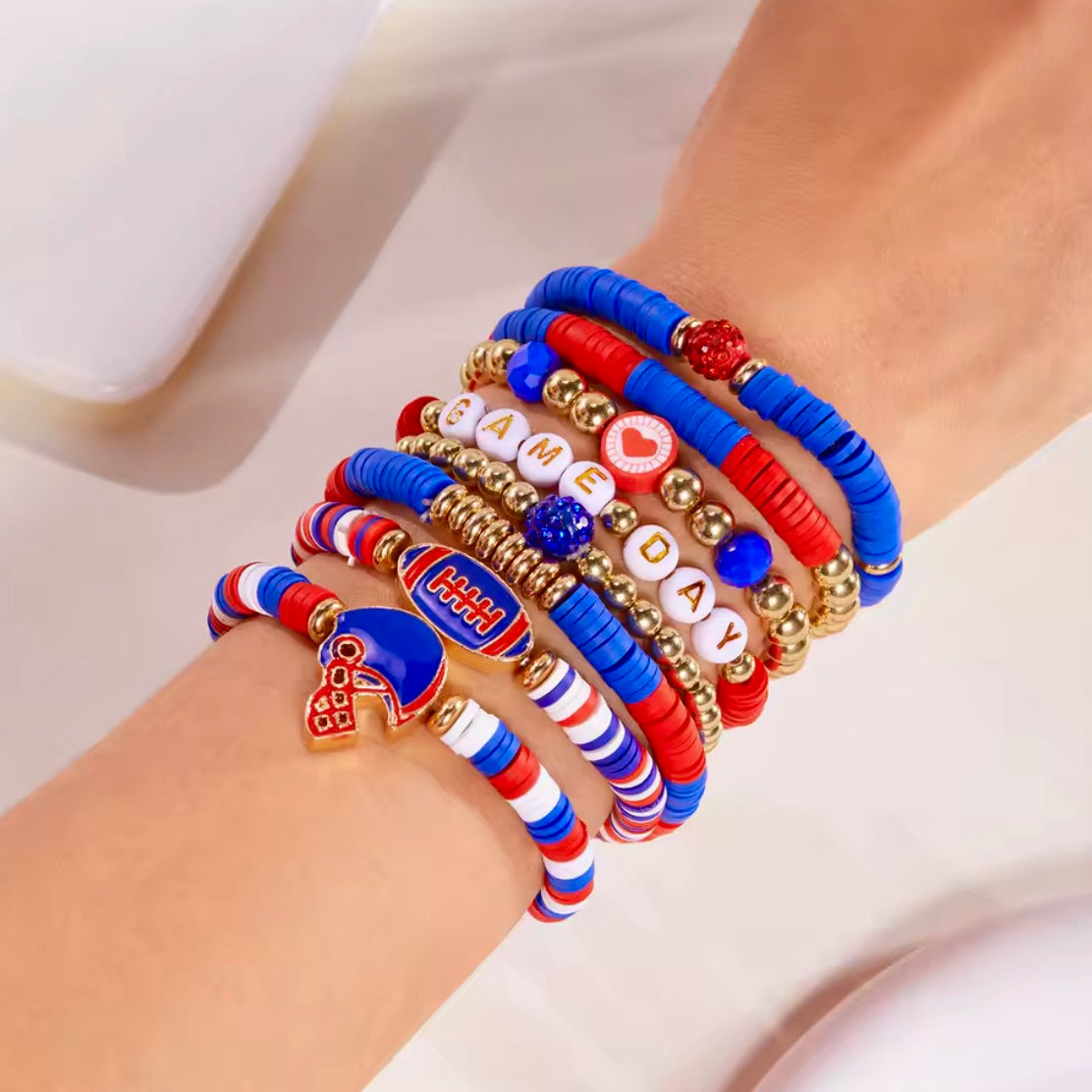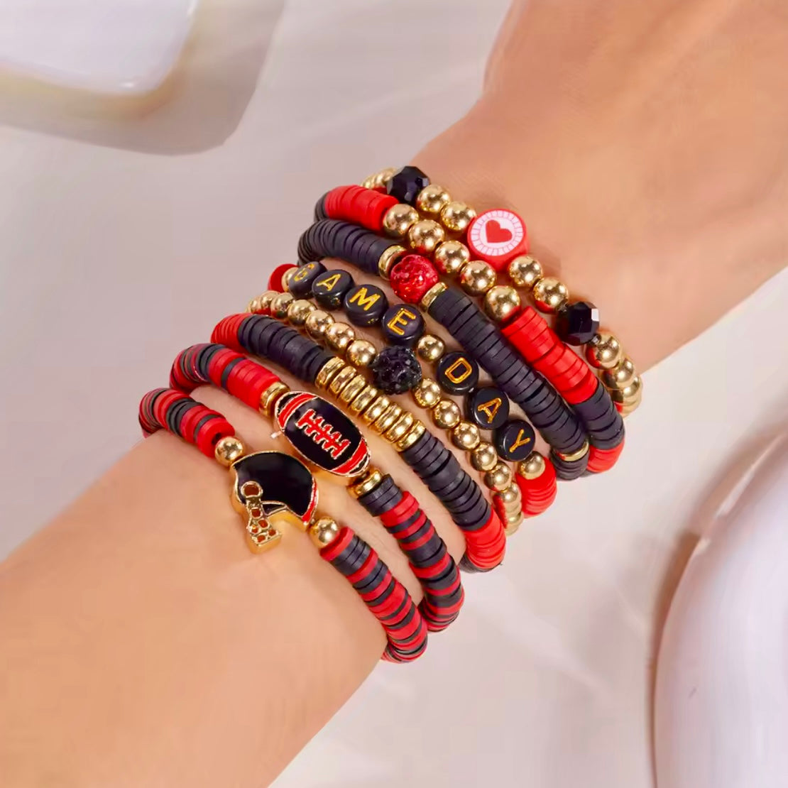 Get ready to show off your school spirit with our Beaded Game Day Bracelet Set! With a maroon, white, and gold color scheme, these 8 bracelets are perfect for adding some flair to your game day outfit. Stand out from the crowd and rep your team with style and charm.
