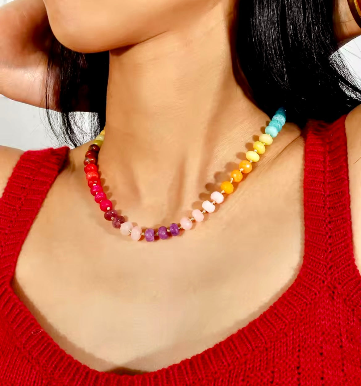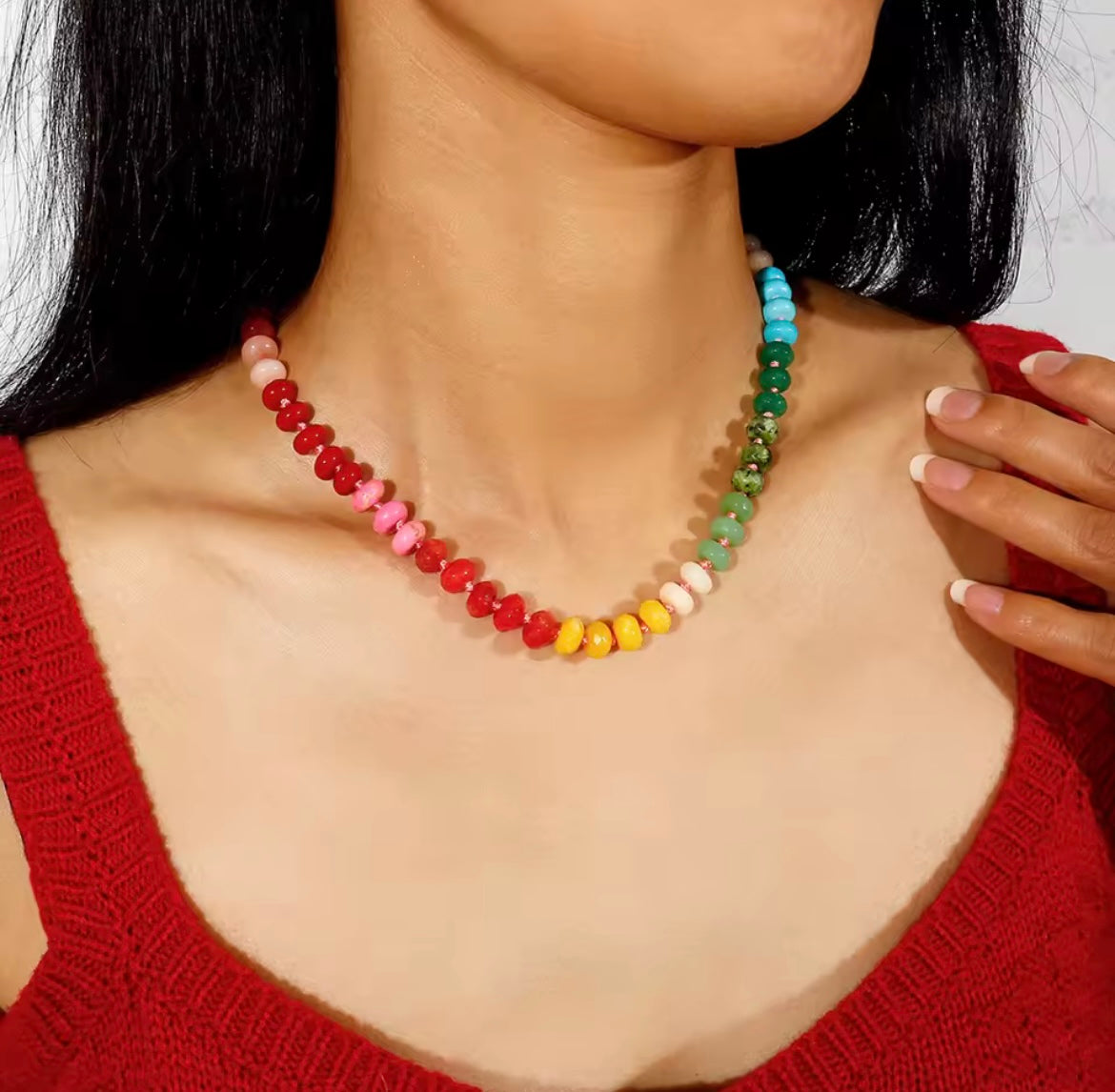 Get ready to add a burst of color to your look with our playful smooth tumbled stone "candy" necklaces! Layer them with all your favorite accessories for a trendy, eye-catching style. After all, who doesn't love a little sweetness in their fashion?