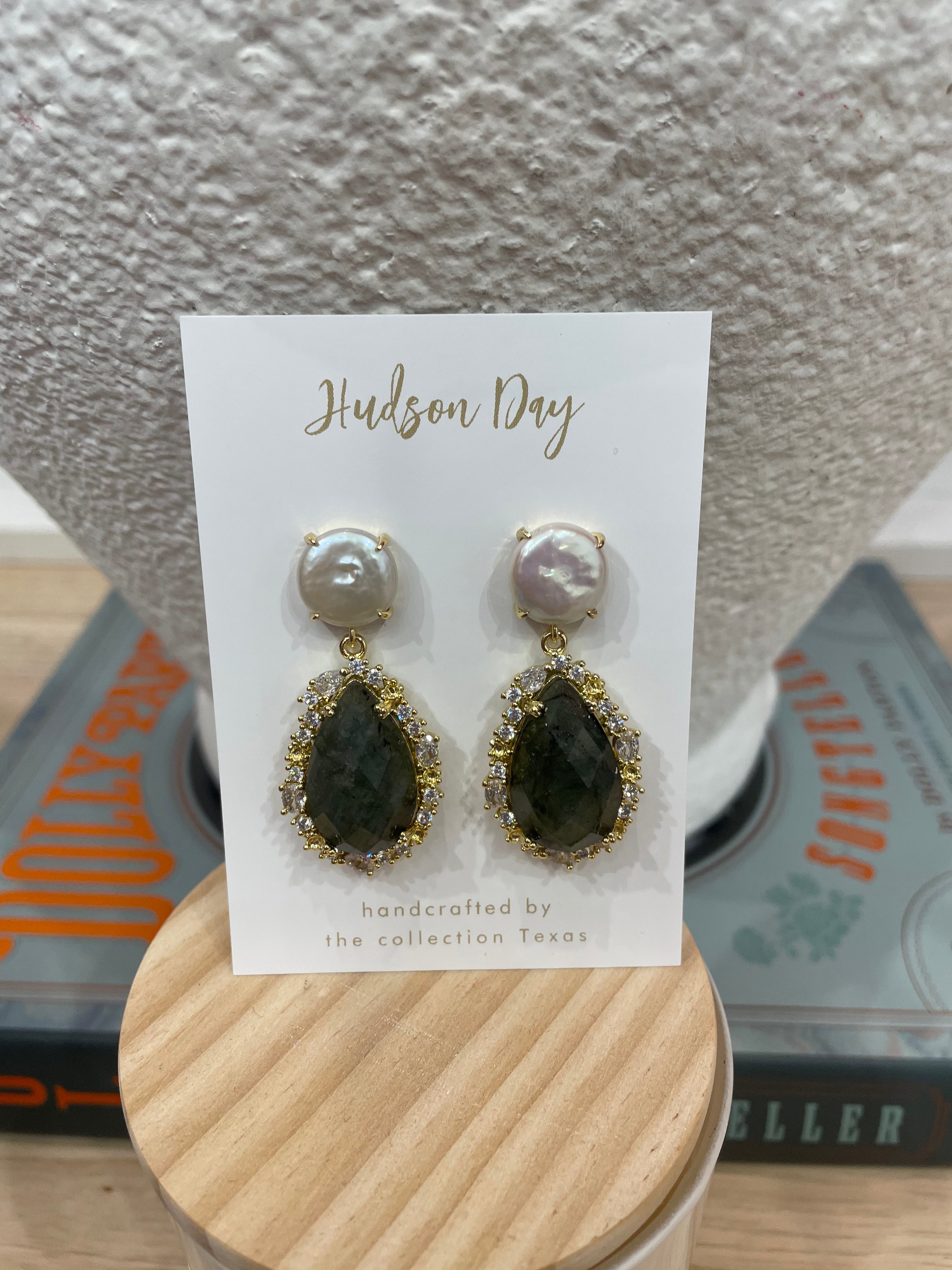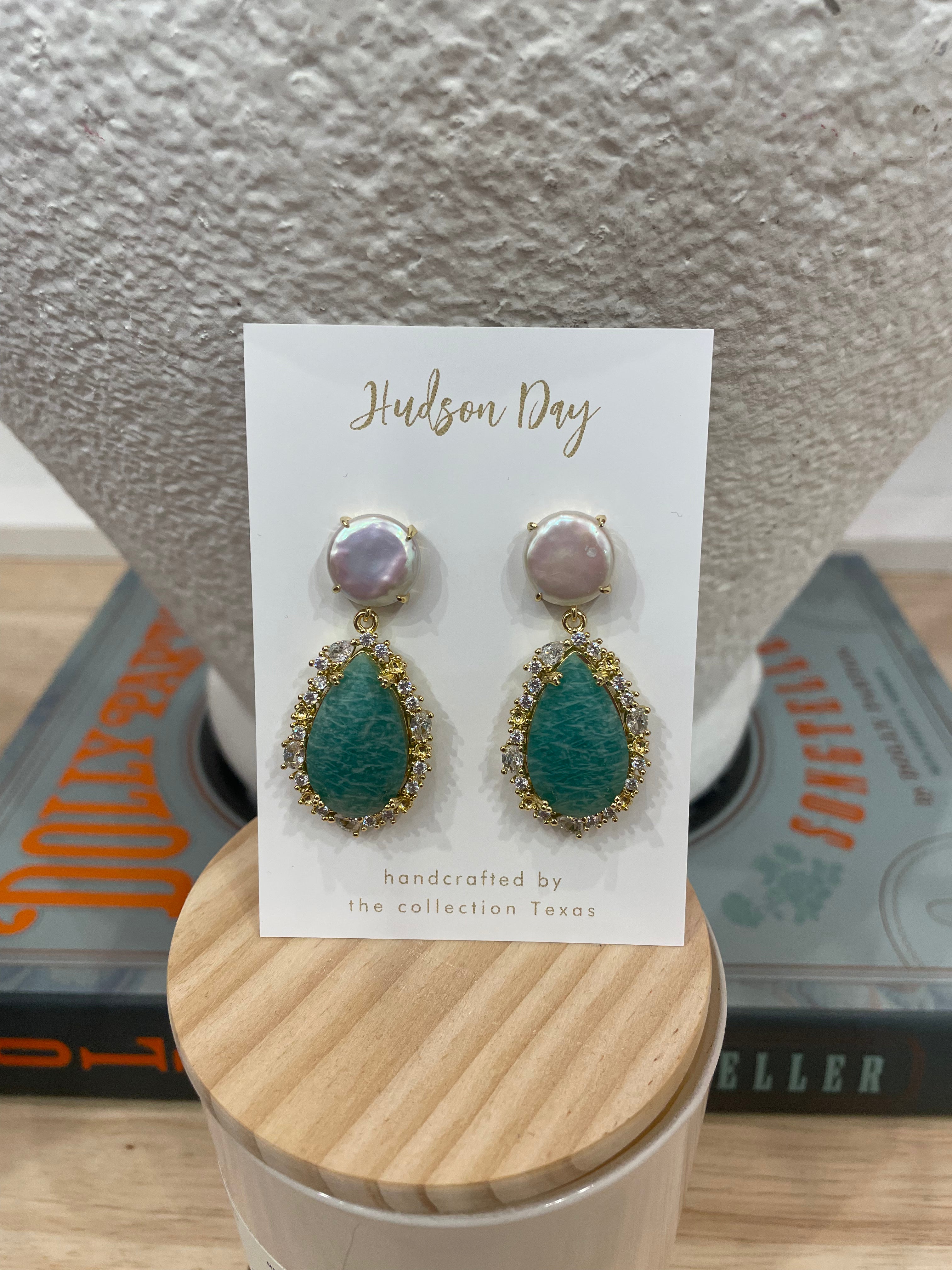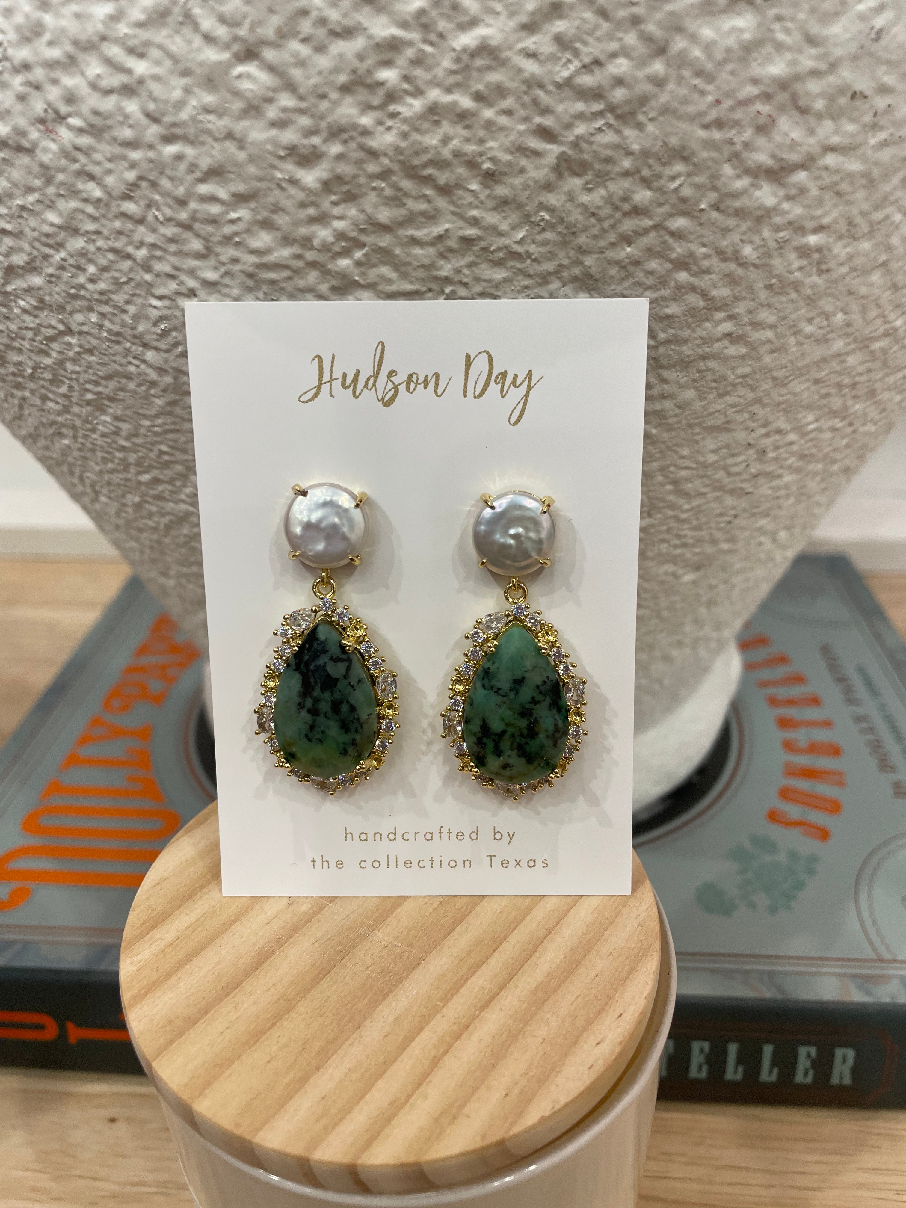 "The Bella Earring by Hudson Day is an elegant accessory that combines vibrant multi-colored jewels with a delicate pearl on top. Perfect for adding a touch of sophistication and sparkle to any outfit."