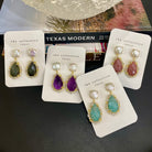 The Bella Earrings are an elegant accessory that combines vibrant multi-colored jewels with a delicate pearl on top. Perfect for adding a touch of sophistication and sparkle to any outfit.