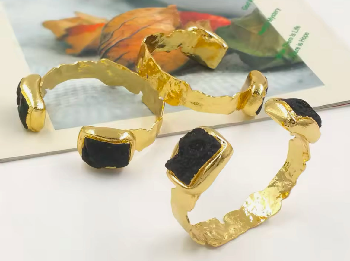 Crafted with natural turquoise, each unique shape of this adjustable cuff bracelet makes it a one-of-a-kind piece. 18k gold plating for durable water resistant wear! Wear it alone for a simple yet stunning look, or pair it with other bracelets for a stacked, statement style.