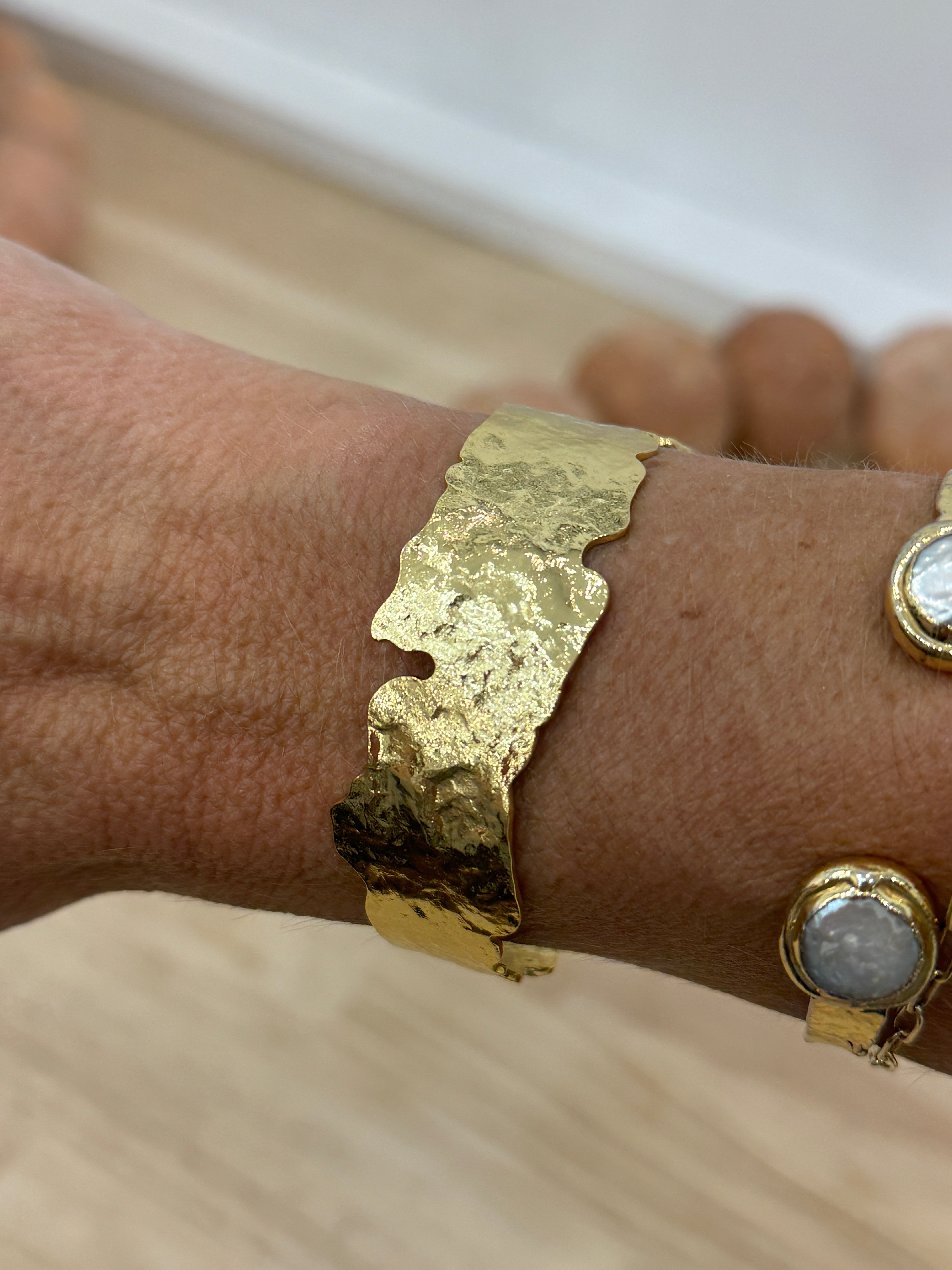 Wide Hammered Gold Cuff