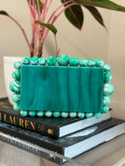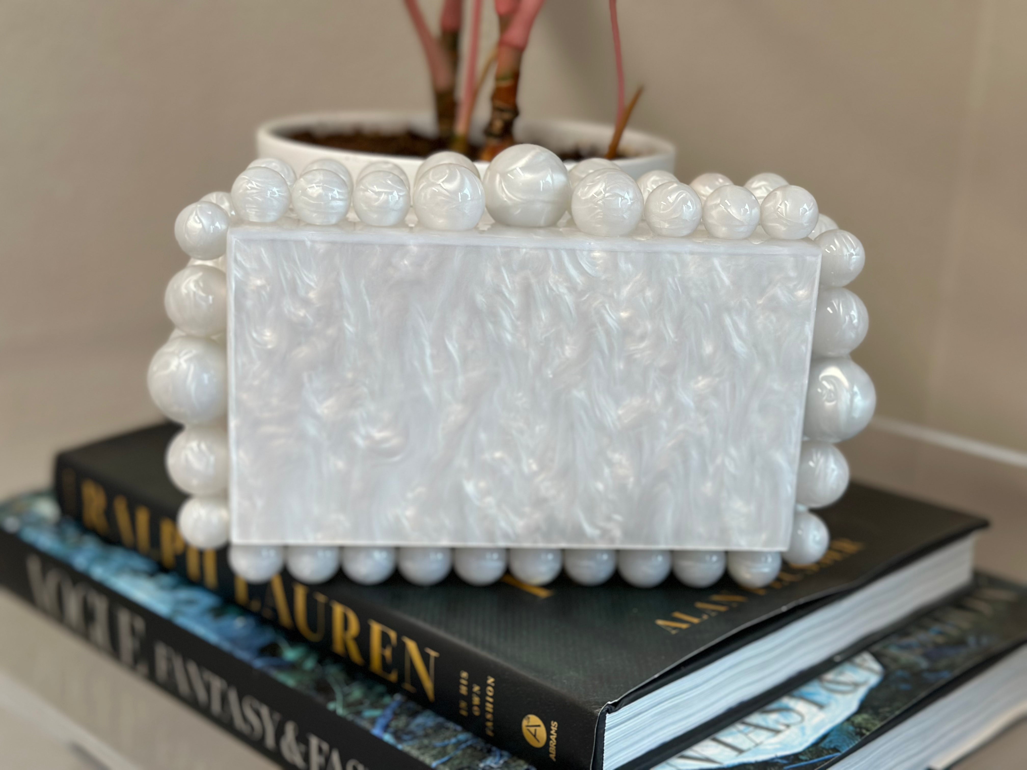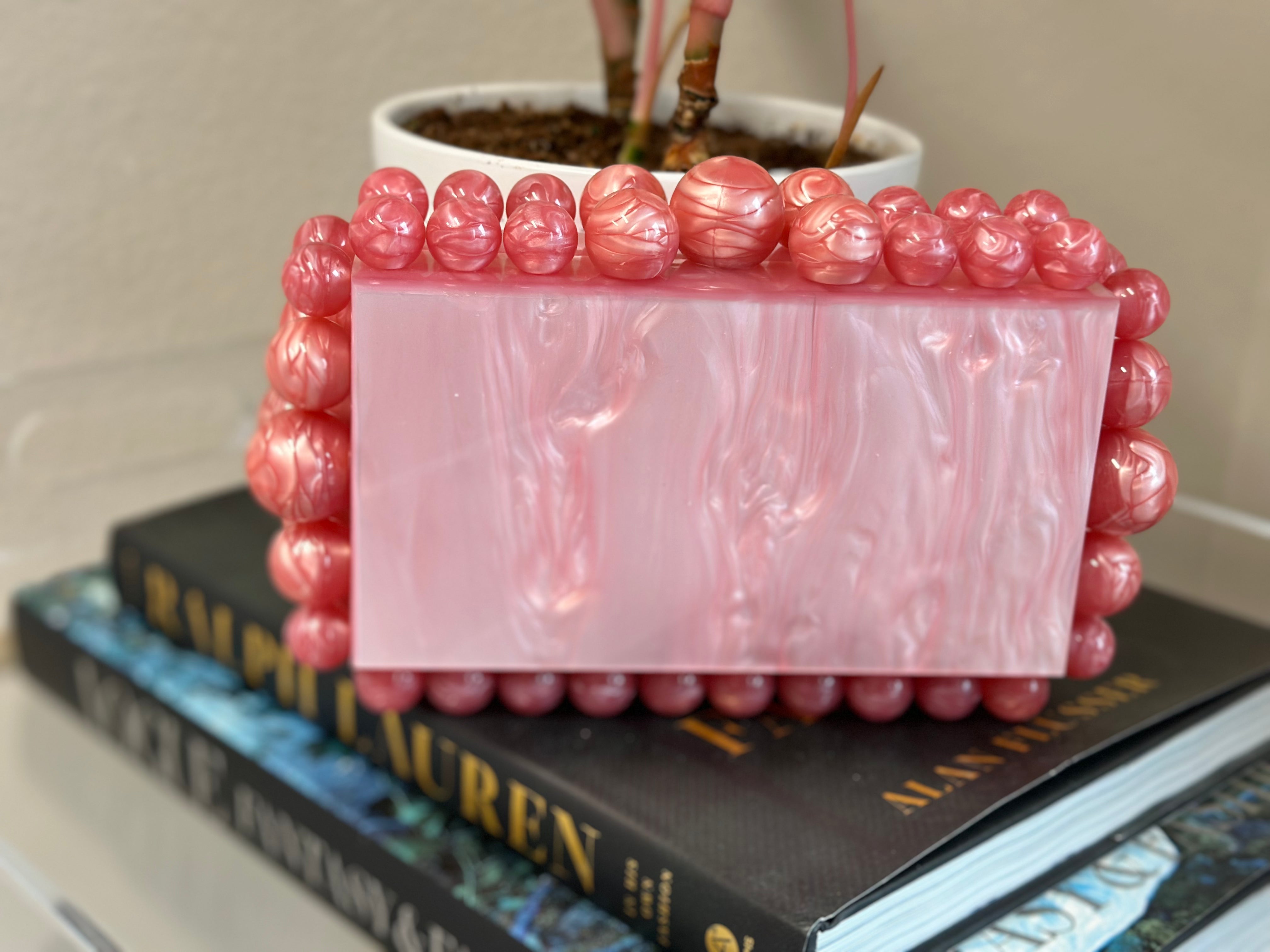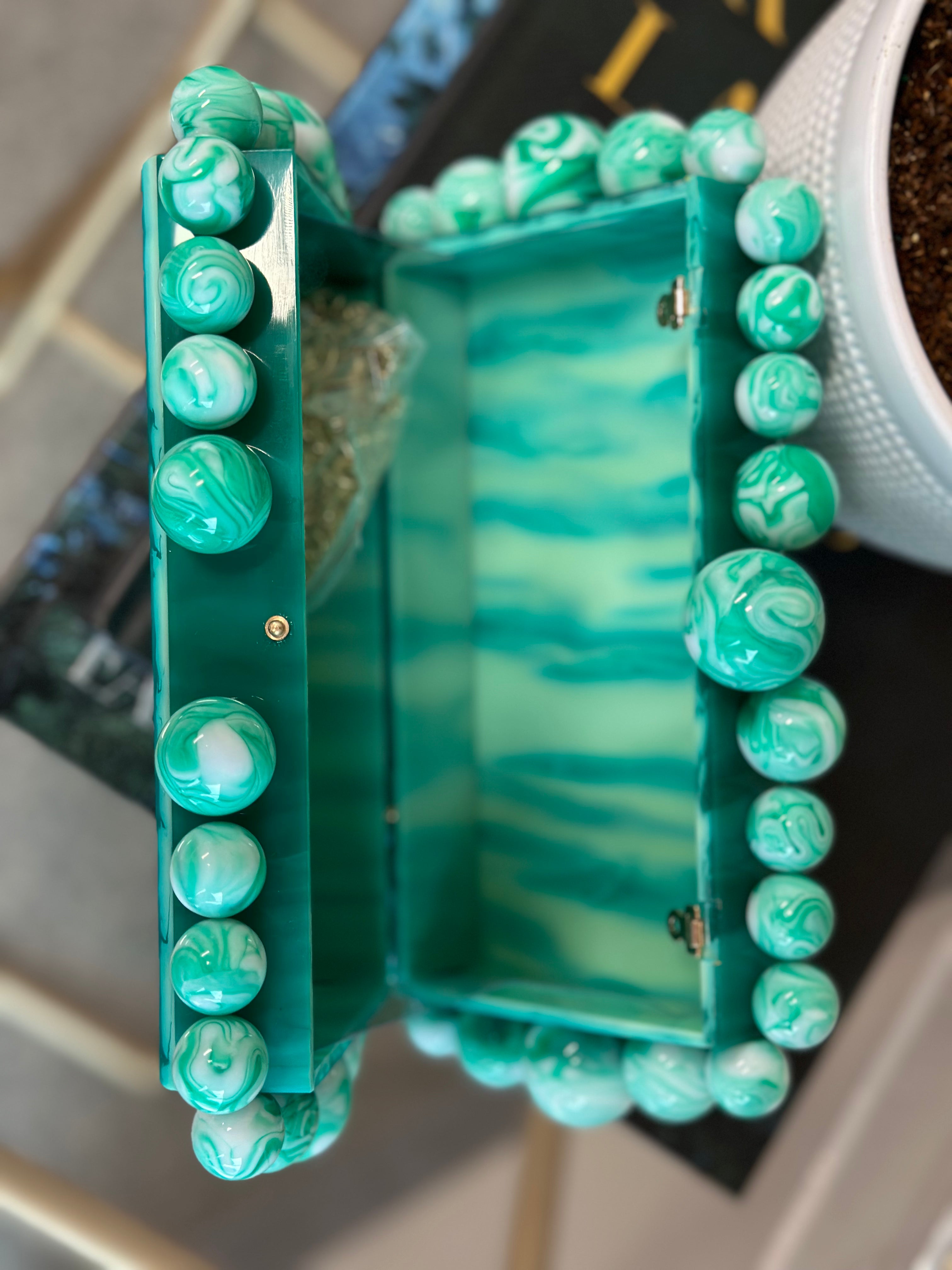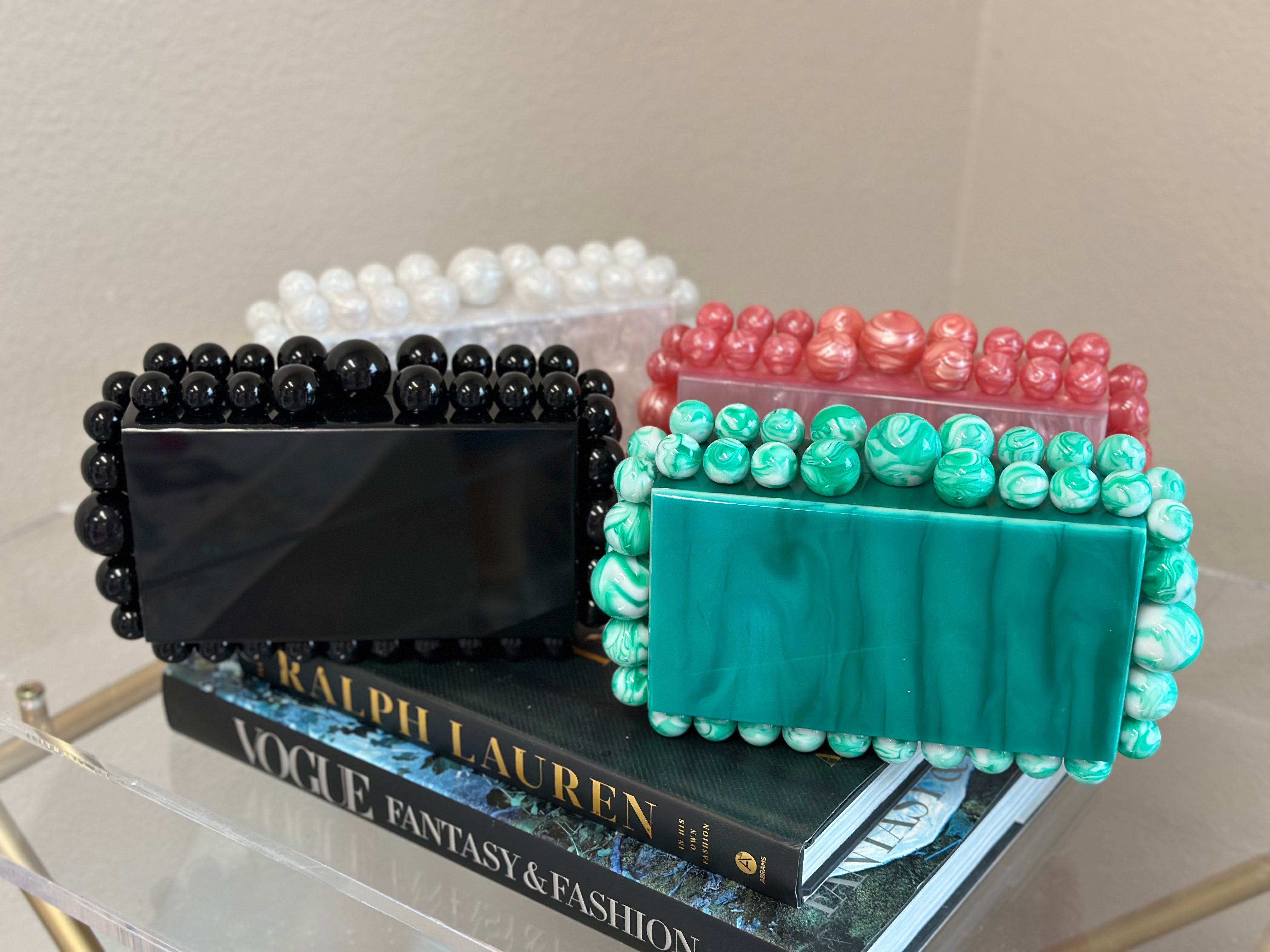 Enhance your outfit with our Bubble Acrylic Purse. This rectangle hard acrylic clutch features a detachable gold chain, offering versatility as a crossbody bag. Elevate your style with this sleek and functional accessory.