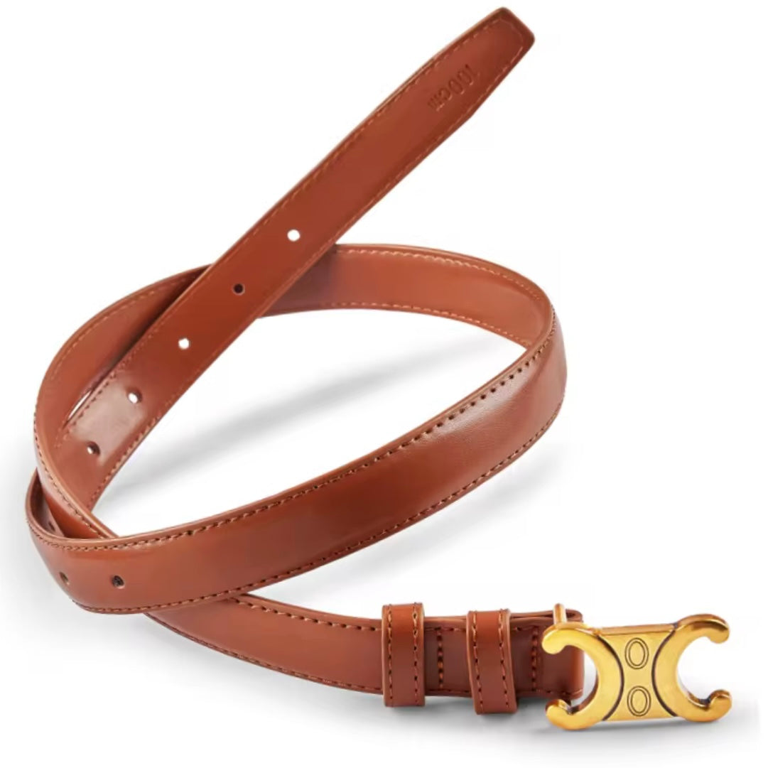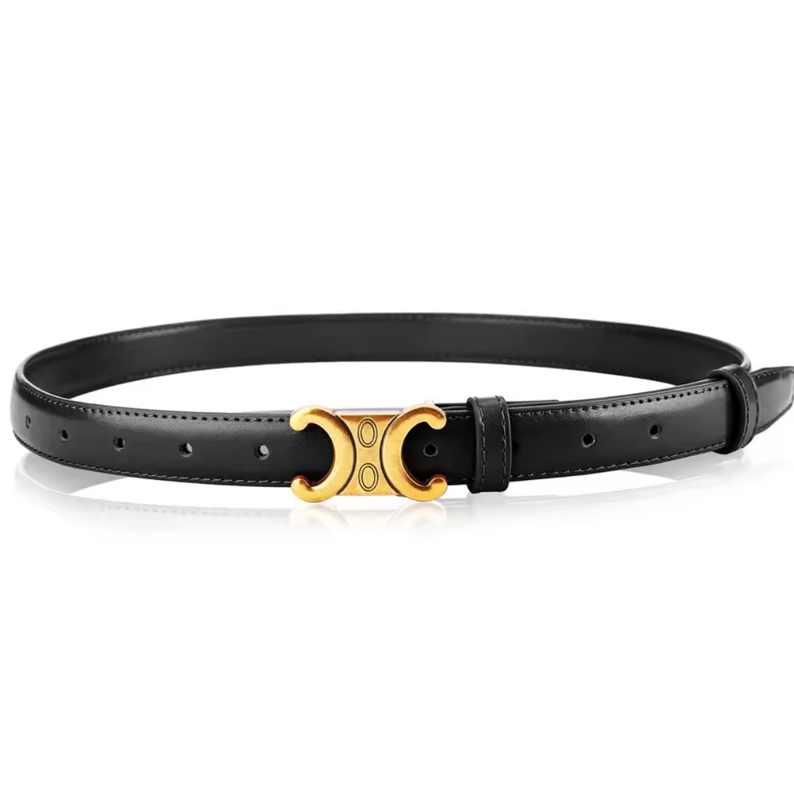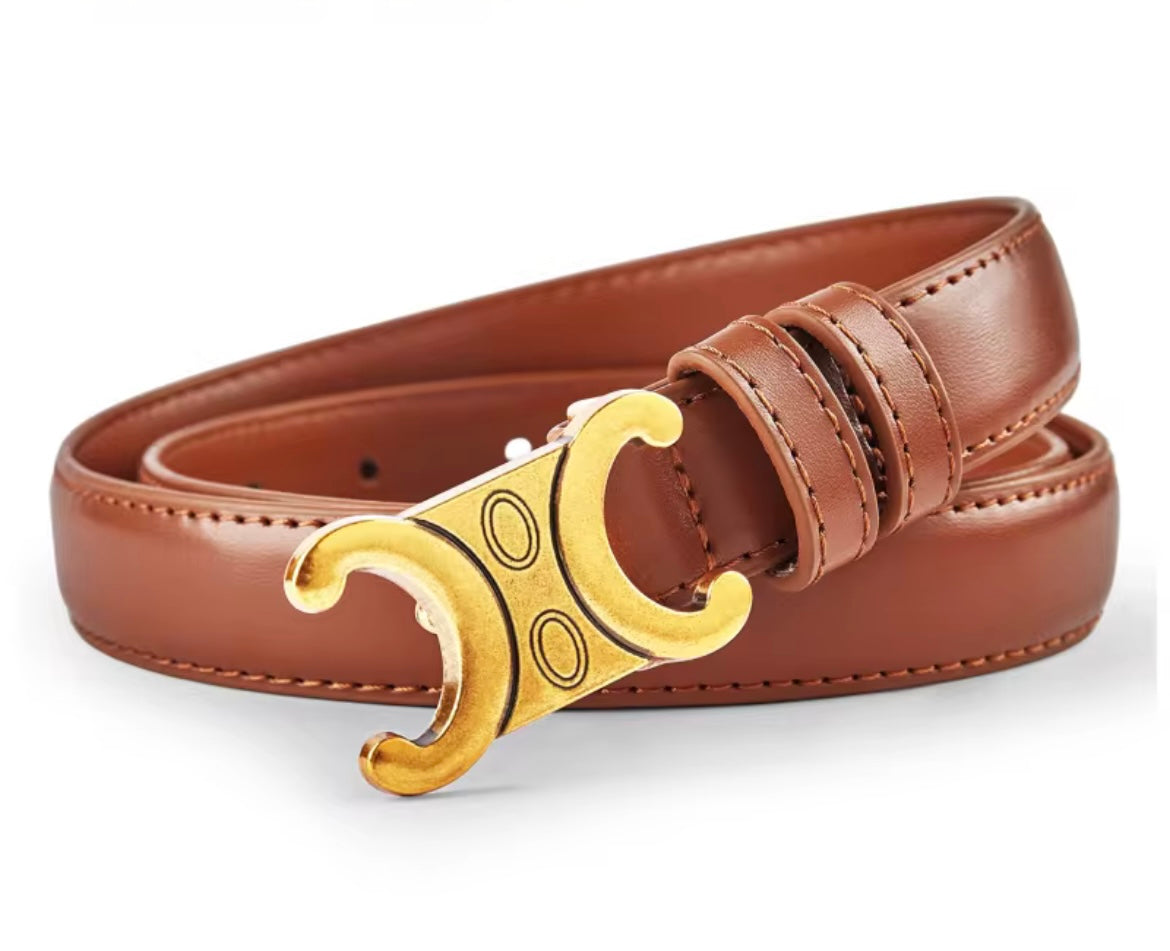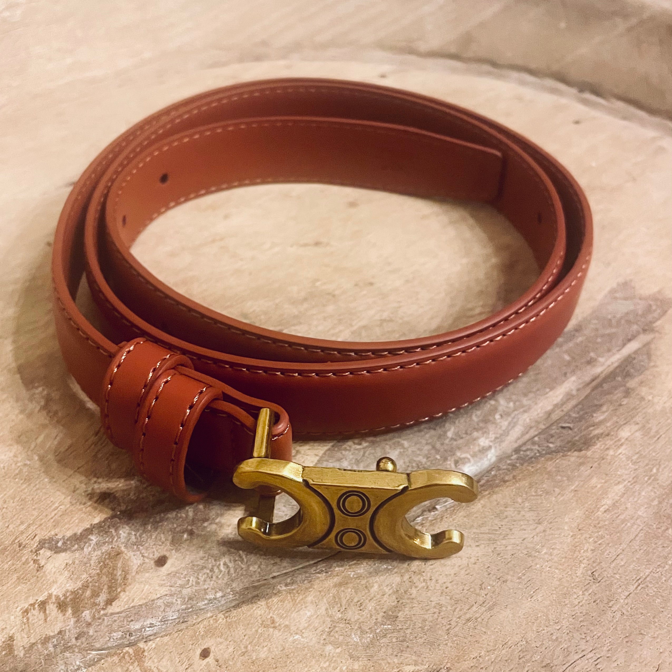 The Cece Belt features a sleek brass buckle that adds a touch of sophistication to any outfit. Elevate your style with this versatile and timeless accessory!