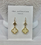 These exquisite Clover Drop Earrings are the epitome of elegance with a delicate golden clover design that gracefully drops from your ears. outfit. Enhance your style and make a statement with these beautiful drop earrings.