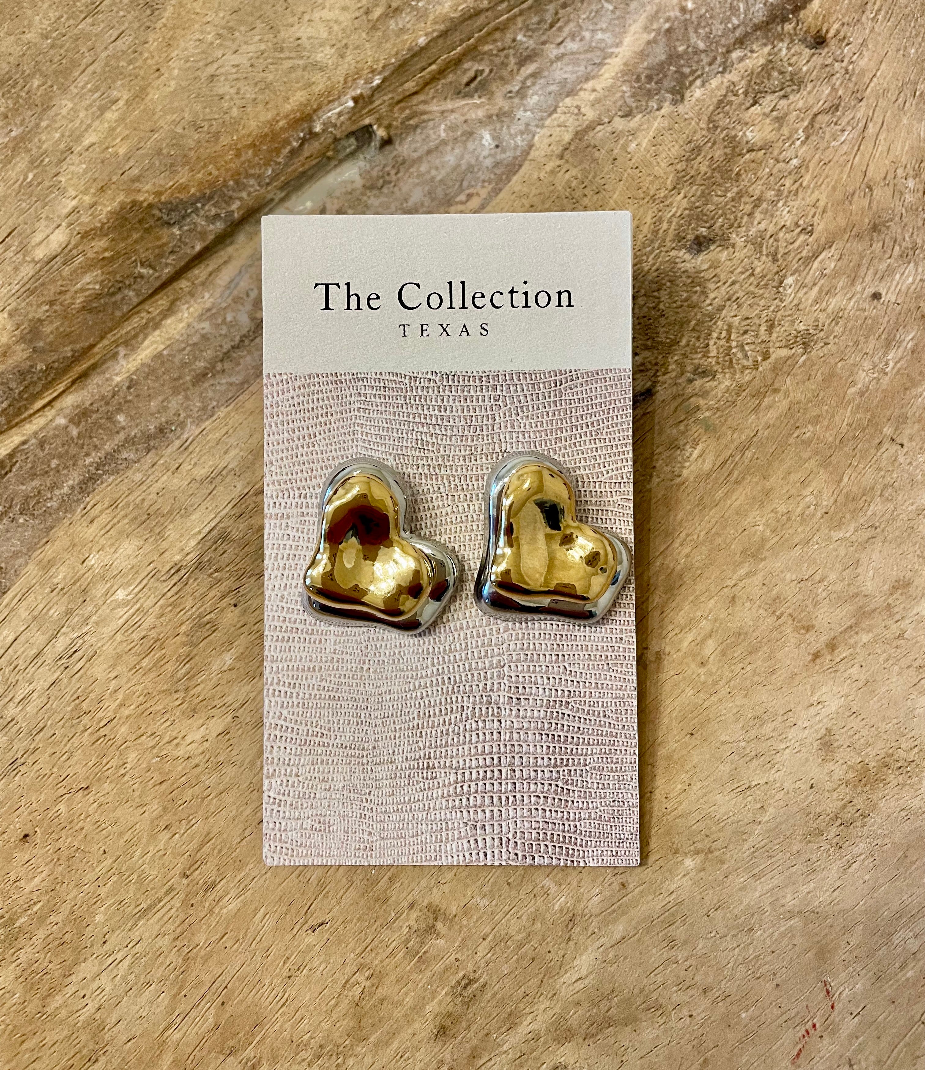 Our Waterproof Melt My Heart Earrings feature a radiant smooth texture, crafted from stainless steel and finished with 18-karat gold plating. Durable, and hypoallergenic, they add a touch of modern romance and effortless shine to any look.