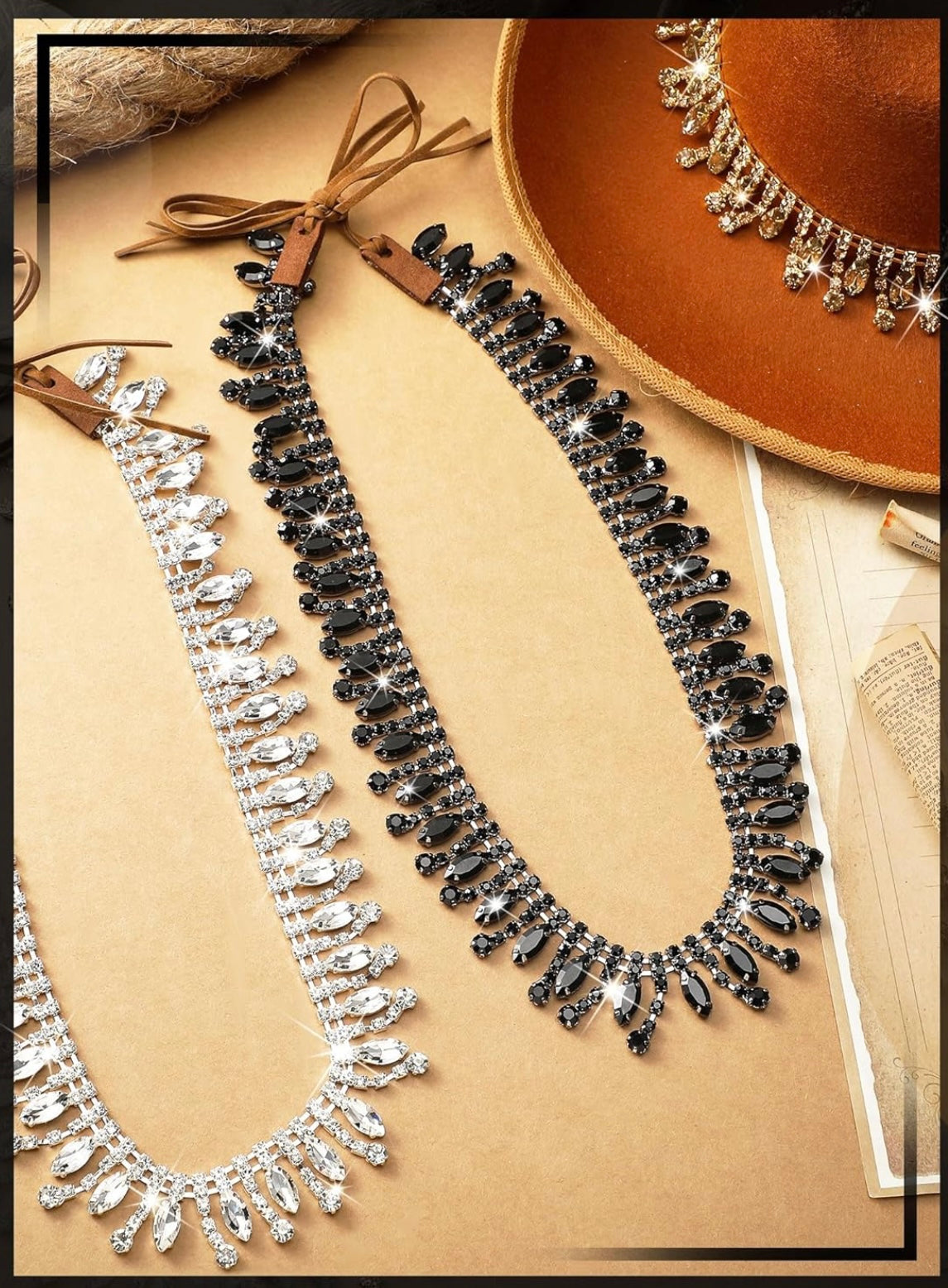 Shine in style with these rhinestone western hat bands, featuring sparkling accents for a bold, elevated, country-chic look.