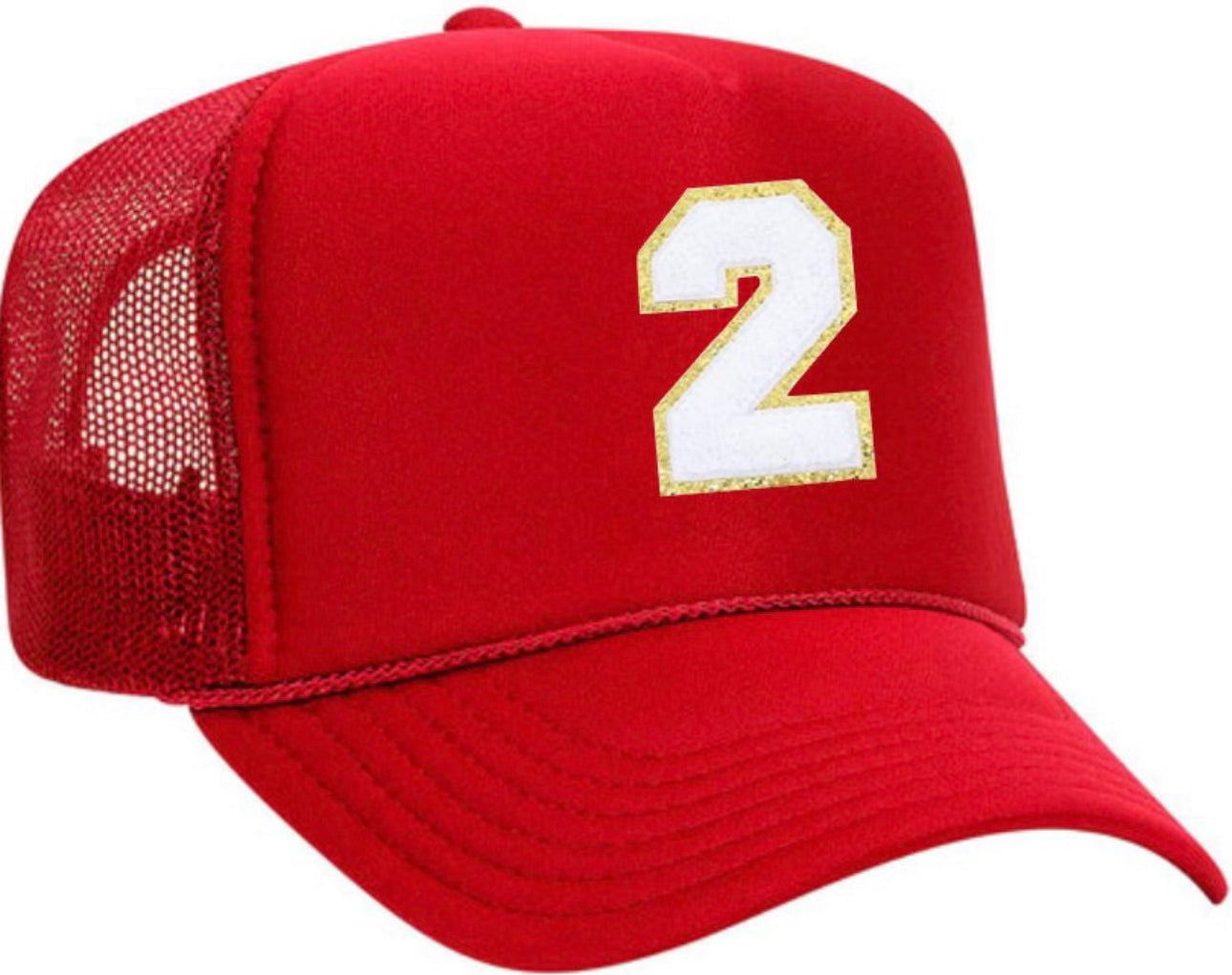 Customizable Chenille NUMBER PATCH Trucker HAT