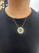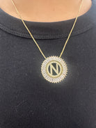 Shine bright with our Disco Diamond Initial Necklace. This elegant round necklace features dazzling rhinestones and stunning gold color, with individual initials delicately placed inside each letter from A to Z. Make a statement and personalize your jewelry with this one-of-a-kind piece.