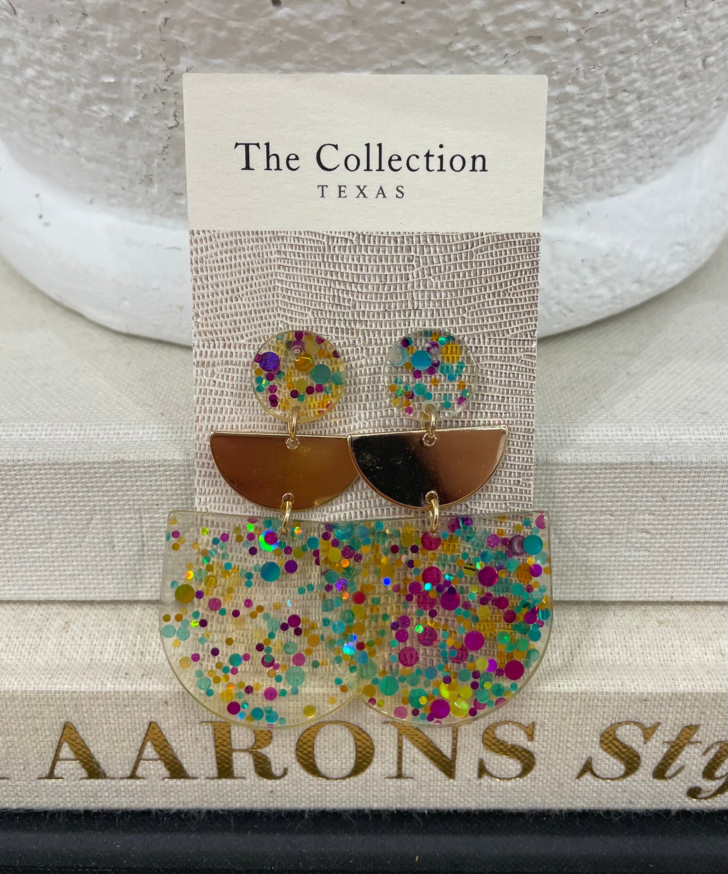 Add a touch of sparkle without the weight. These clear acrylic tiered earrings feature shimmering glitter throughout and a chic gold accent tier that elevates the look. Designed to be lightweight and comfortable for all-day wear, their layered design catches the light beautifully, making them perfect for both everyday outfits and special occasions. Stylish, eye-catching, and easy to wear.