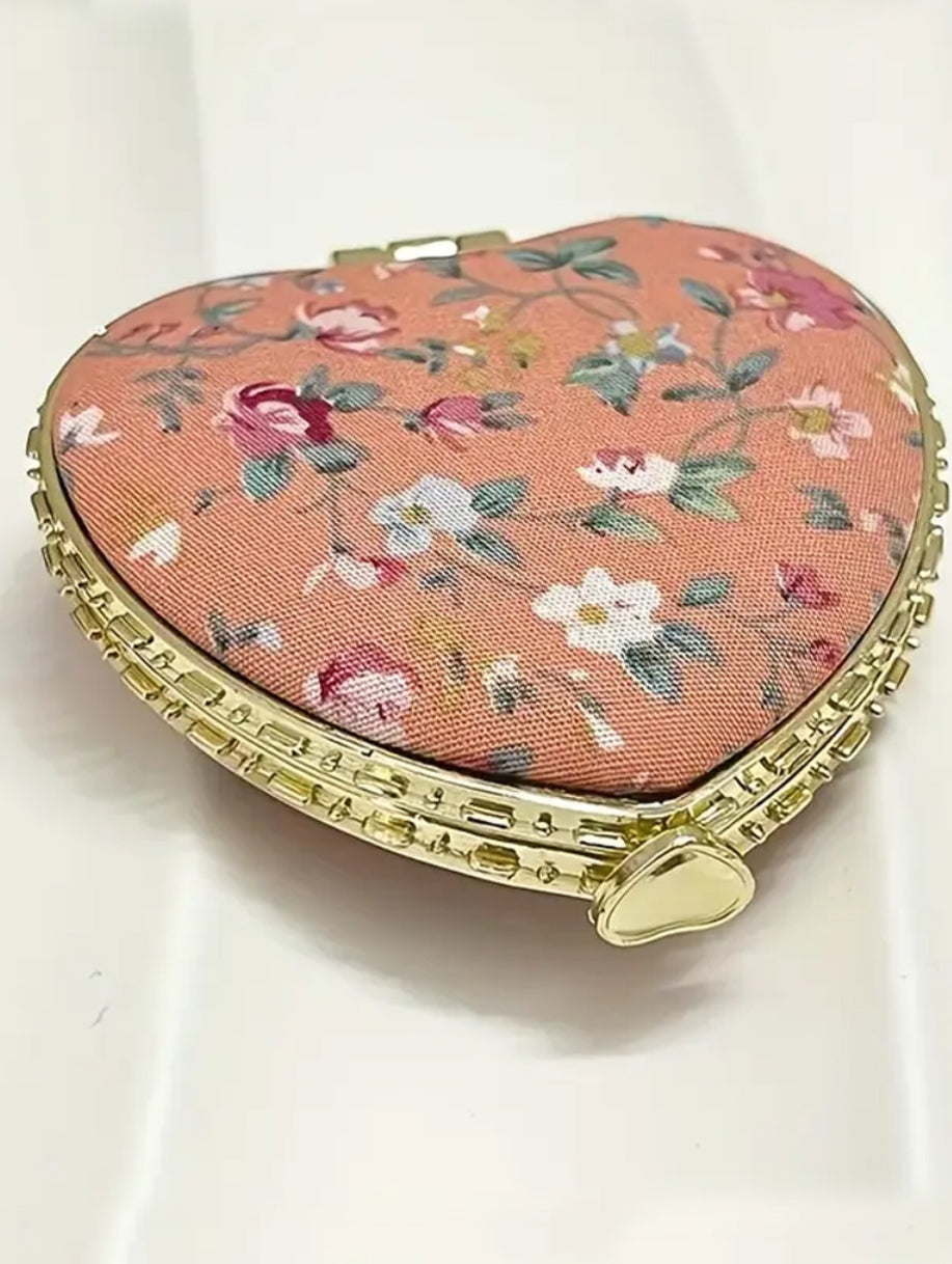 Sweet, stylish, and perfectly portable—this floral heart-shaped mini hand mirror is a charming must-have for quick touch-ups on the go. With its dual folding, double-sided design and pretty floral details, it’s as functional as it is adorable.