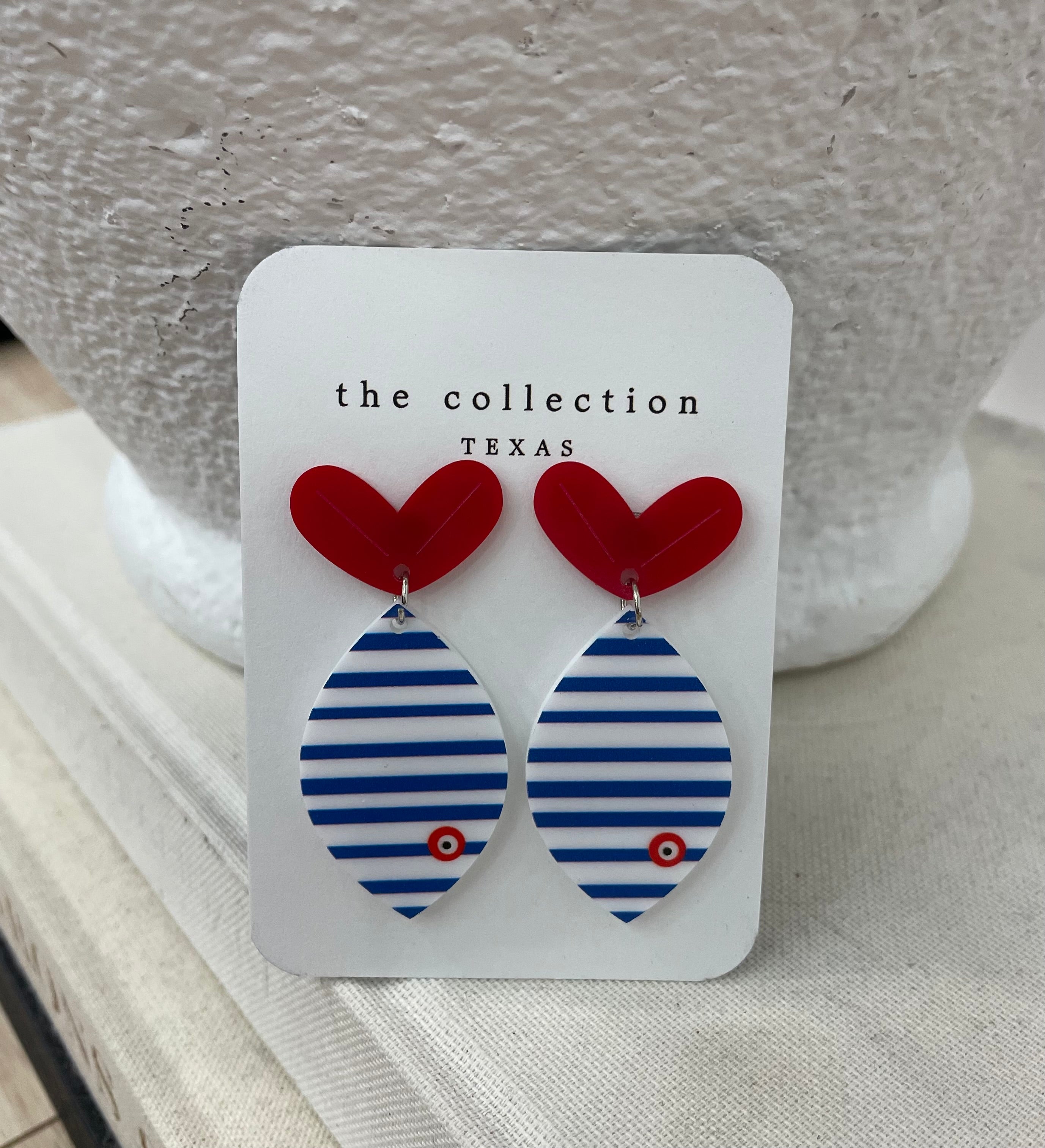 Show off your love for the ocean with our I Heart Fish Earrings. With a lightweight design, and classic red, white, and blue colors, you'll be able to wear them comfortably all day long. Catch the attention of everyone around you with these colorful and unique earrings.