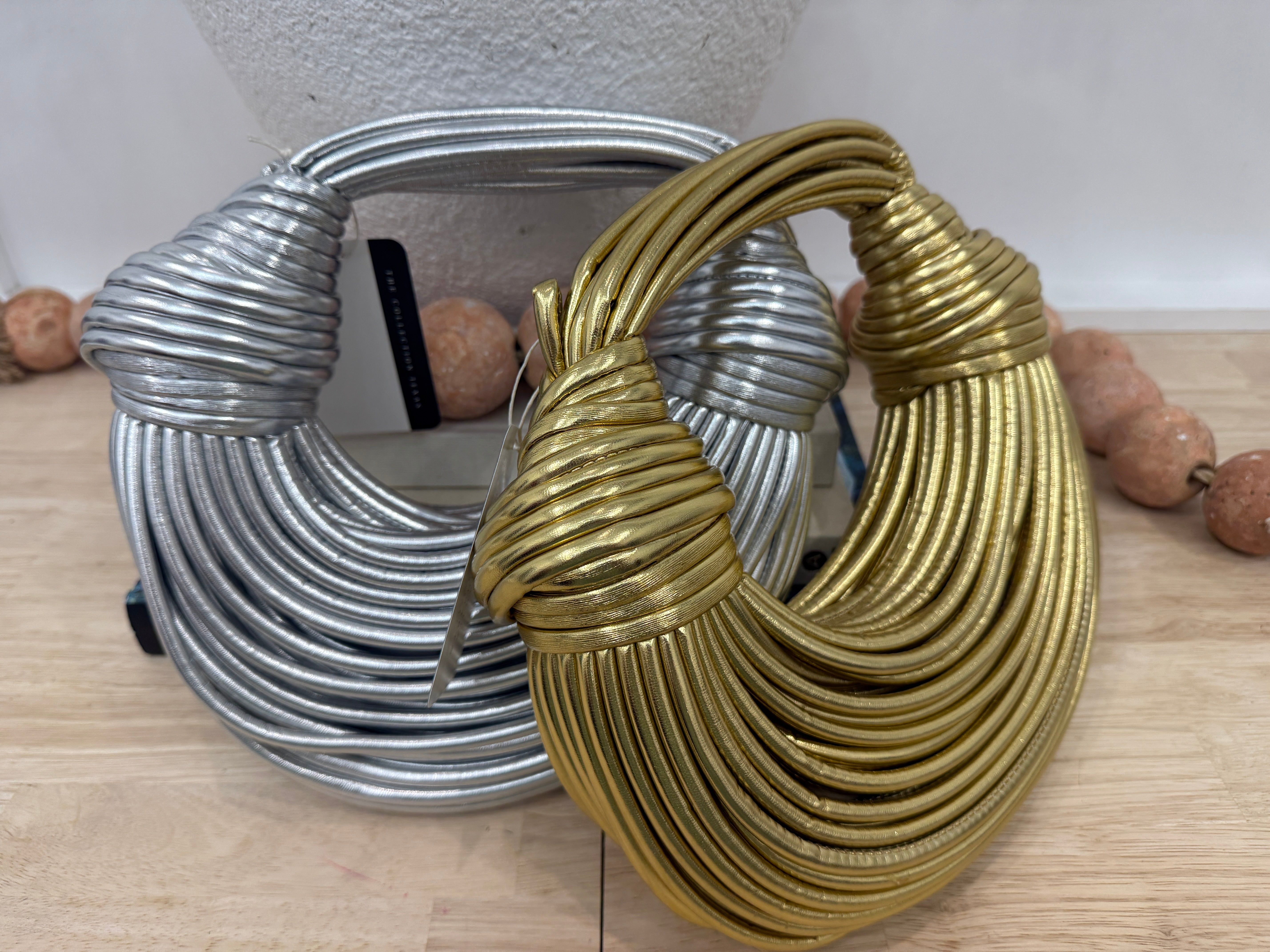 Shine bright with this metallic statement clutch – available in both gold and silver for the ultimate luxe touch. Designed with a sleek small handle, it’s versatile enough to sling over your shoulder or carry chicly at your side. The perfect pop of glam, this clutch instantly elevates any outfit—whether you’re dressing up for a night out or adding sparkle to your everyday look. ✨