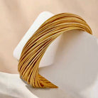 Our Metallic Twisted Bangle features a layered design, adding dimension and visual interest to any outfit. Expertly crafted with silver plating and a sleek metal finish, this bangle is a versatile accessory that can elevate any look. Its unique design offers a modern twist to a classic accessory.