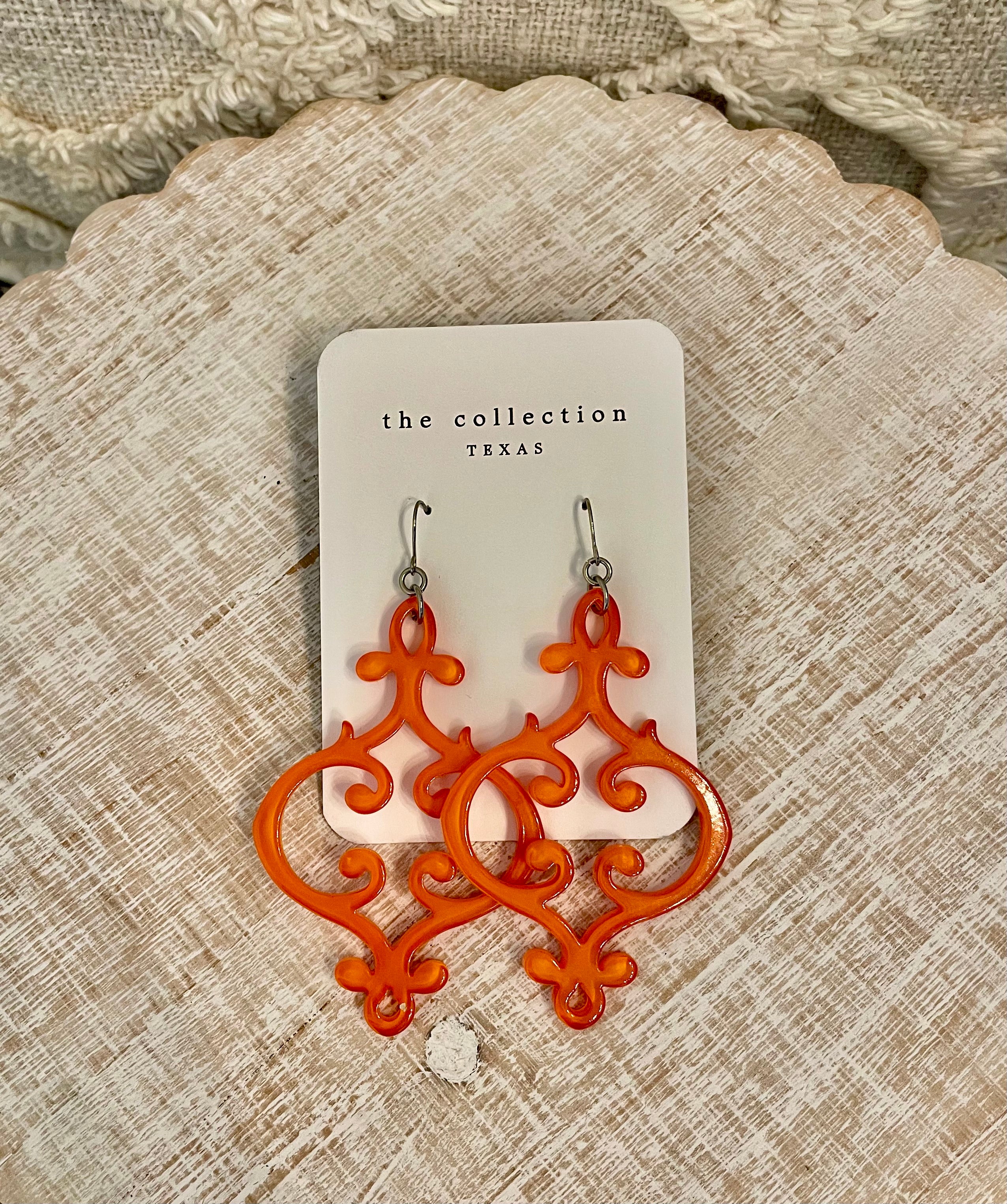 Bold yet elegant, these Artisan Scroll Statement Earrings feature an ornate scrollwork design. Crafted in a vibrant hue, the open filigree silhouette feels airy and lightweight while still making a striking impact. Finished with classic fishhook ear wires, they sway beautifully with movement and add instant personality to any outfit.