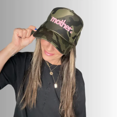 A standout accessory made just for moms: this structured trucker cap boasts a bold “mother.” embroidery on its foam front, supported by airy mesh and topped with a slightly curved brim. Stylish, adjustable, and purposeful—plus, select options give back to moms in need. The blend of fashion-forward design and intentional messaging makes it the go-to hat that’s as meaningful as it is on trend. As seen in Vogue Magazine