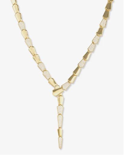 For the times you want to feel like your MOST baddie self… With extra large snake-like links adorned with shimmering pavé simulated diamonds, the Pavé XL Serpent Lariat (or Y Necklace) is perfect for when you want to leave an unforgettable BIG impression.
