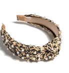Add a touch of charm to your look with this black knotted headband, sparkling with delicate pearl embellishments. Perfect for effortlessly elevating any hairstyle, it combines playful elegance with everyday comfort. Whether you're dressing up or down, this headband adds a fun and stylish flair to your outfit.