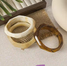 Add some charm to your wardrobe with these Rustic Resin Bangles. Available in an array of earth tones, these bangles will offer a soft touch of nature to any outfit.