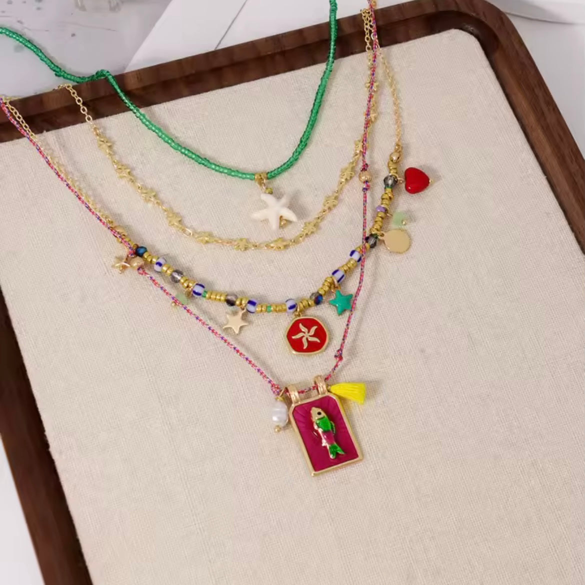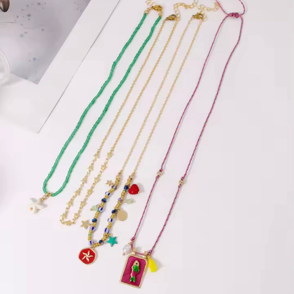 Bring coastal charm to your look with this four-piece Seaside Necklace Set, inspired by sun-kissed shores and ocean breezes. Each necklace features unique seaside elements that can be worn together for a layered, beachy statement or individually for a subtle nautical touch. Designed to complement one another, this versatile set adds effortless elegance and a relaxed coastal vibe to any outfit—perfect for summer days, vacations, or whenever you want to carry a hint of the sea with you.