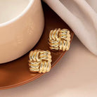 Elevate your look with these Square Knot Earrings, designed to embody timeless elegance and refined simplicity. Featuring a beautifully intertwined knot design, these earrings symbolize unity and enduring style. The radiant gold finish adds a warm, polished glow, making them perfect for both everyday wear and special occasions. Lightweight and versatile, they effortlessly complement casual outfits, workwear, or evening attire—an essential piece for any jewelry collection.