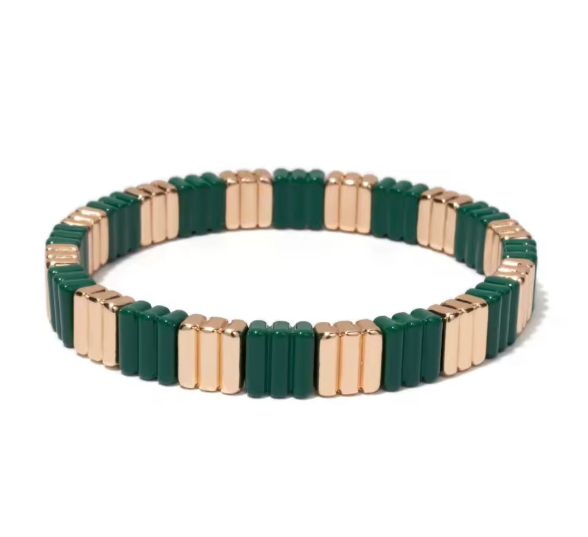 Add a splash of sparkle to your look with these gold and colorful stacking bracelets. Perfect for game day excitement or everyday fun, they mix and match effortlessly to keep your style lively and unique. Layer them up and let your wrist do the talking!