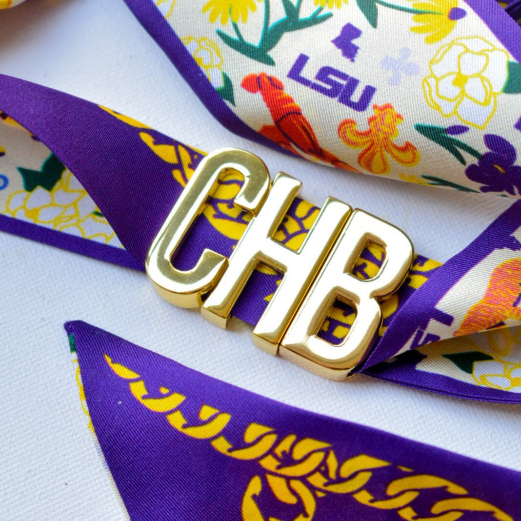 Add a personal touch to any Twilly scarf with our customizable slider letters! Whether you want to showcase your game day spirit, initials, or a meaningful word, these sliders let you create a look that’s uniquely yours. Perfect for making a statement, you can customize with your name, initials, or even a favorite motto. Create endless combinations and add a pop of personality to your favorite accessory!