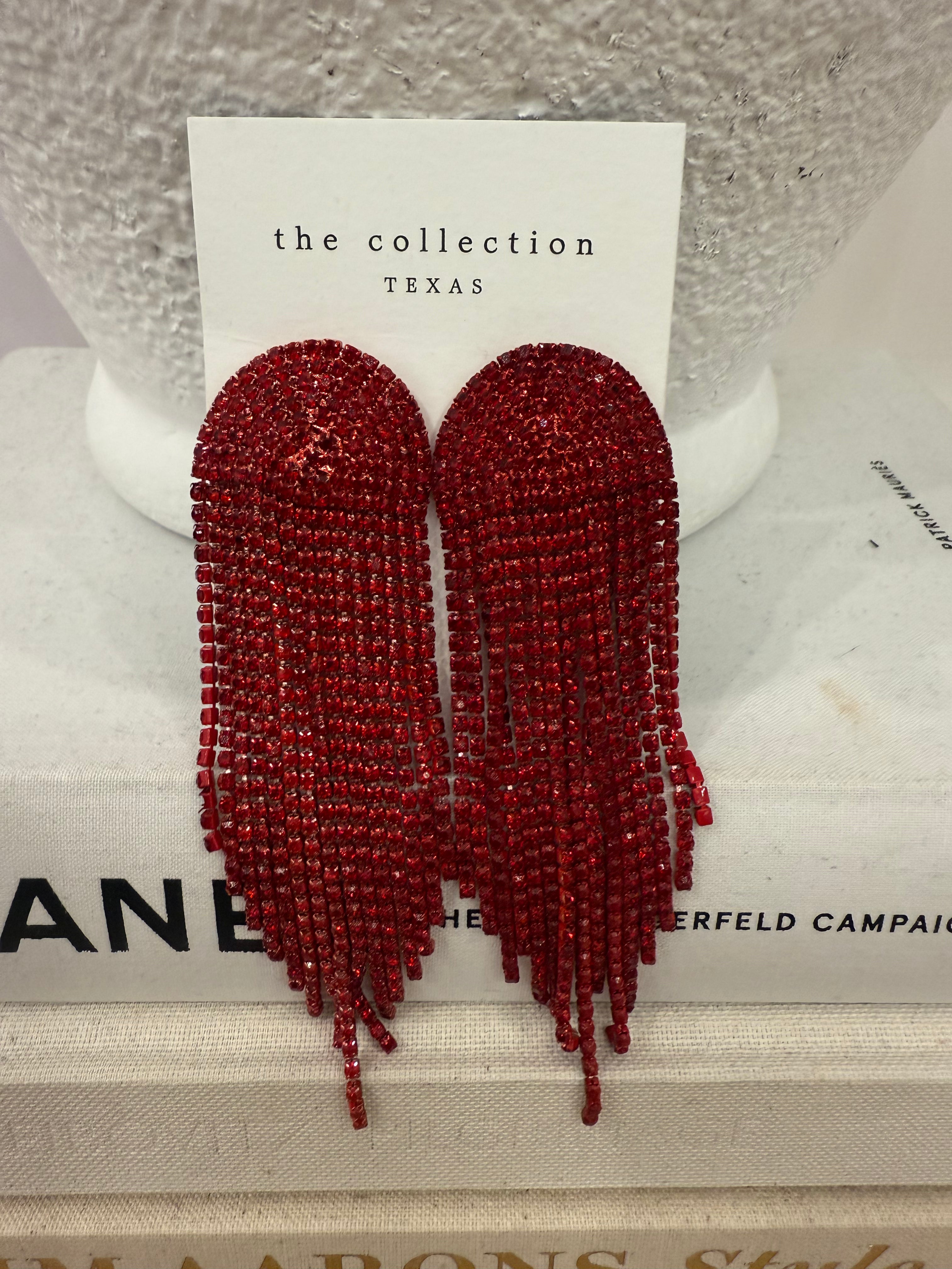 Make a statement with these dazzling waterfall earrings—dripping in shimmer and drama. Their chandelier-inspired design cascades with movement, catching the light with every turn. Available in bold red or striking blue, they’re the ultimate finishing touch for your night-out look or game day glam. Lightweight yet eye-catching, these earrings bring the wow factor without the weight.