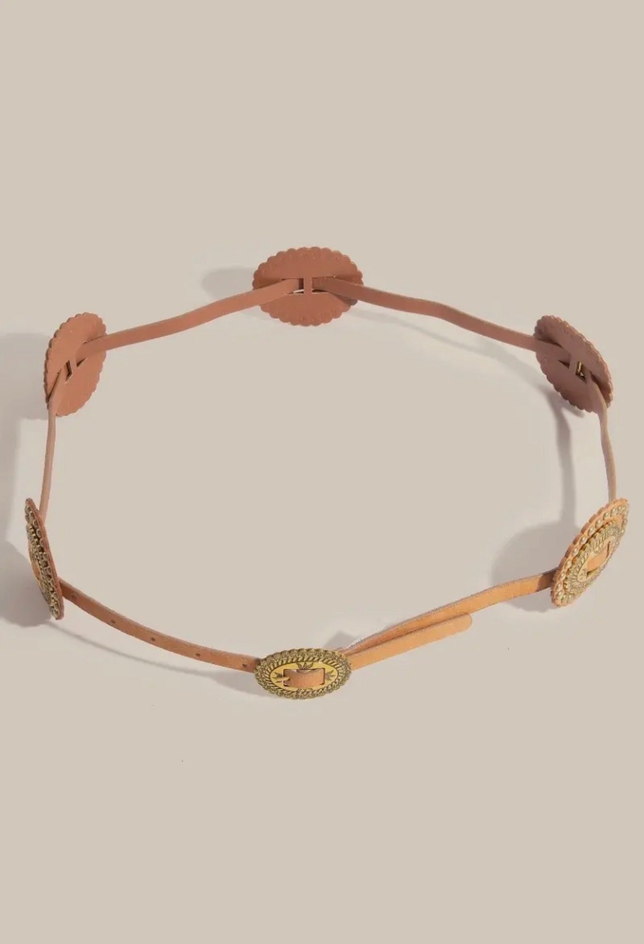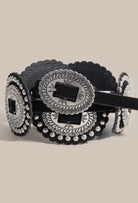 Channel classic Western spirit with a modern twist. This Western Concho Belt is crafted from high-quality vegan leather with a rich, broken-in look and feel. Antique-style metal conchos run the length of the belt, adding bold texture and heritage flair inspired by traditional Southwestern design. Durable and easy to style, it cinches everything from denim to dresses with effortless edge. A statement accessory that brings timeless Western character to any look.