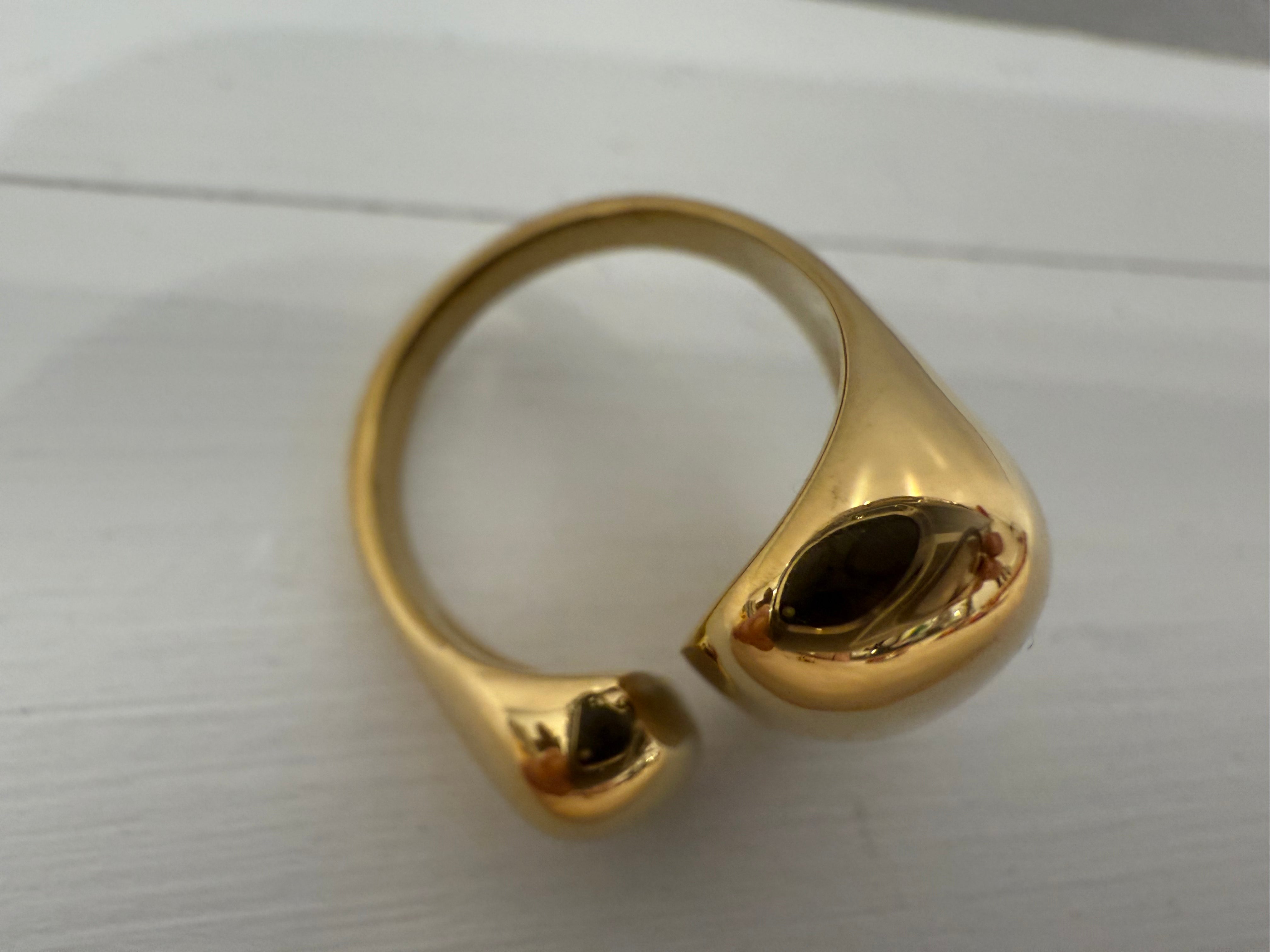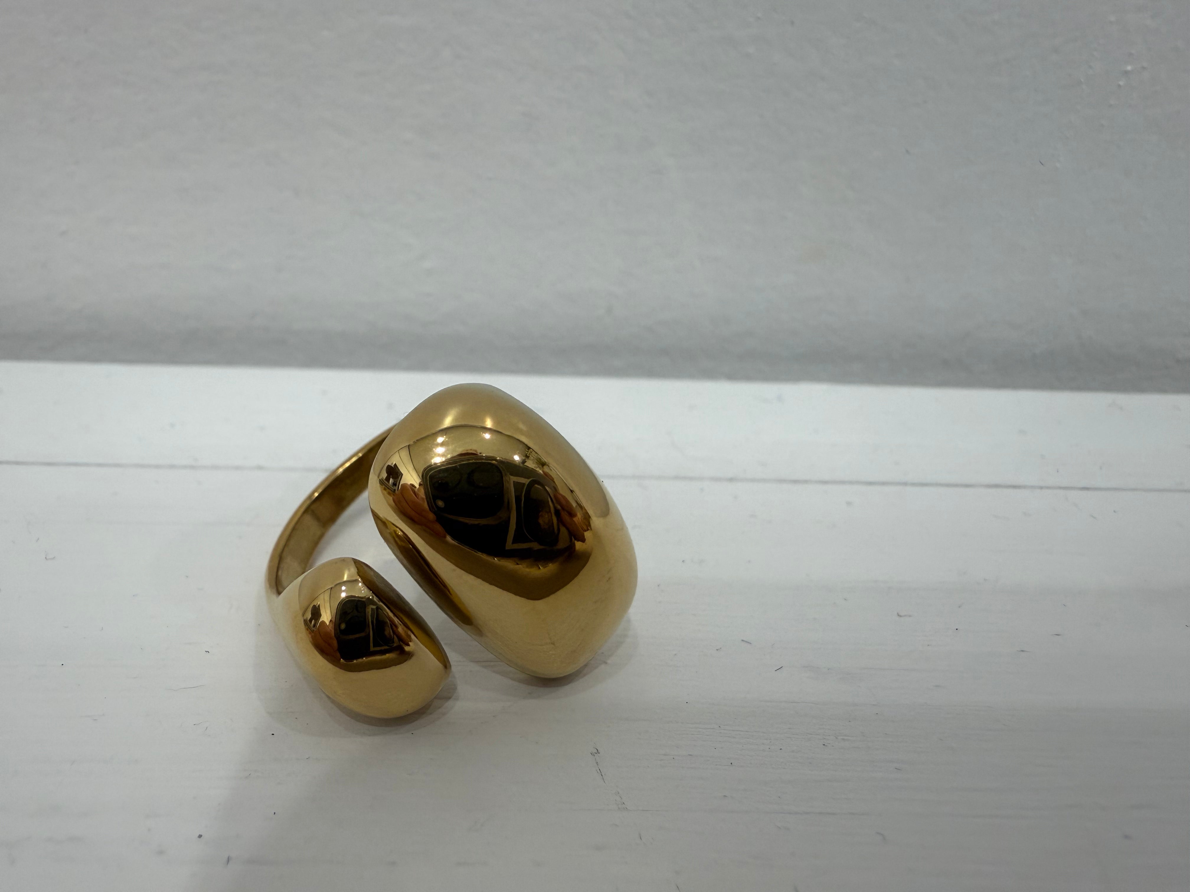 The Wrap Around Ring is a stunning addition to your jewelry collection. Crafted in gold, this ring wraps beautifully around your finger for a unique and eye-catching look. Complete your outfits with this fun and versatile statement piece.