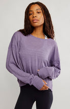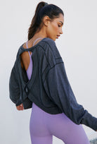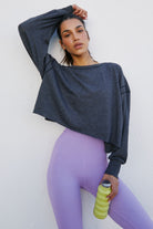 Perfect for going to or from a workout, this layer features a soft fabrication, slouchy crop and flattering back opening.