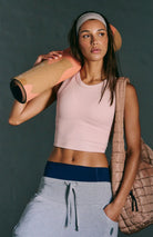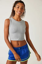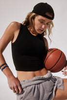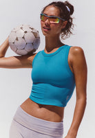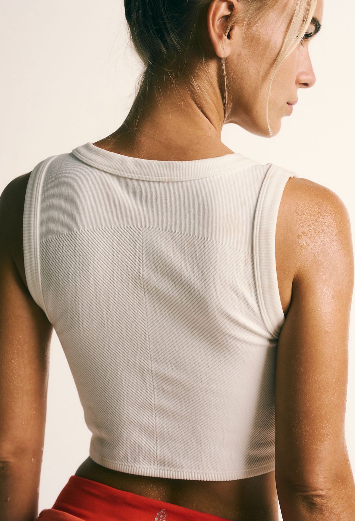 A new addition to your favorite compressive collection, this sleek tank is featured in a cropped fit and muscle-style silhouette with ribbed knit detailing and slight scoop neckline.