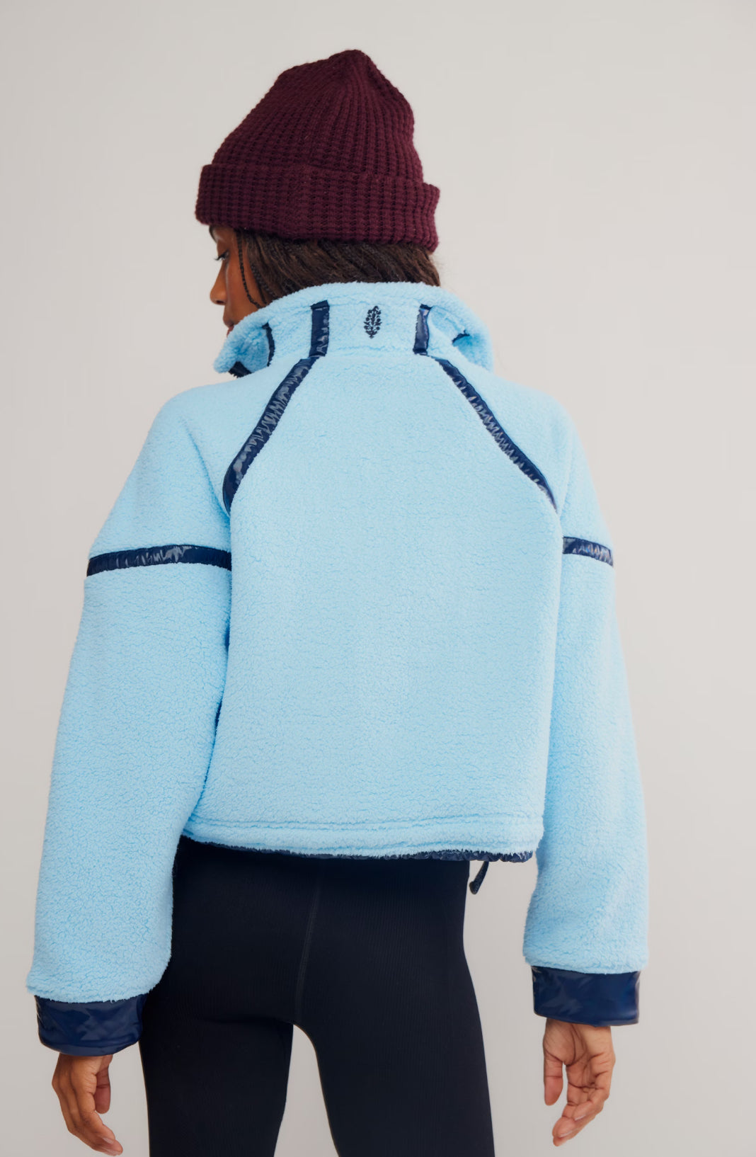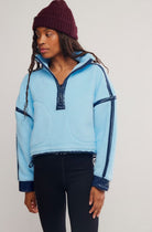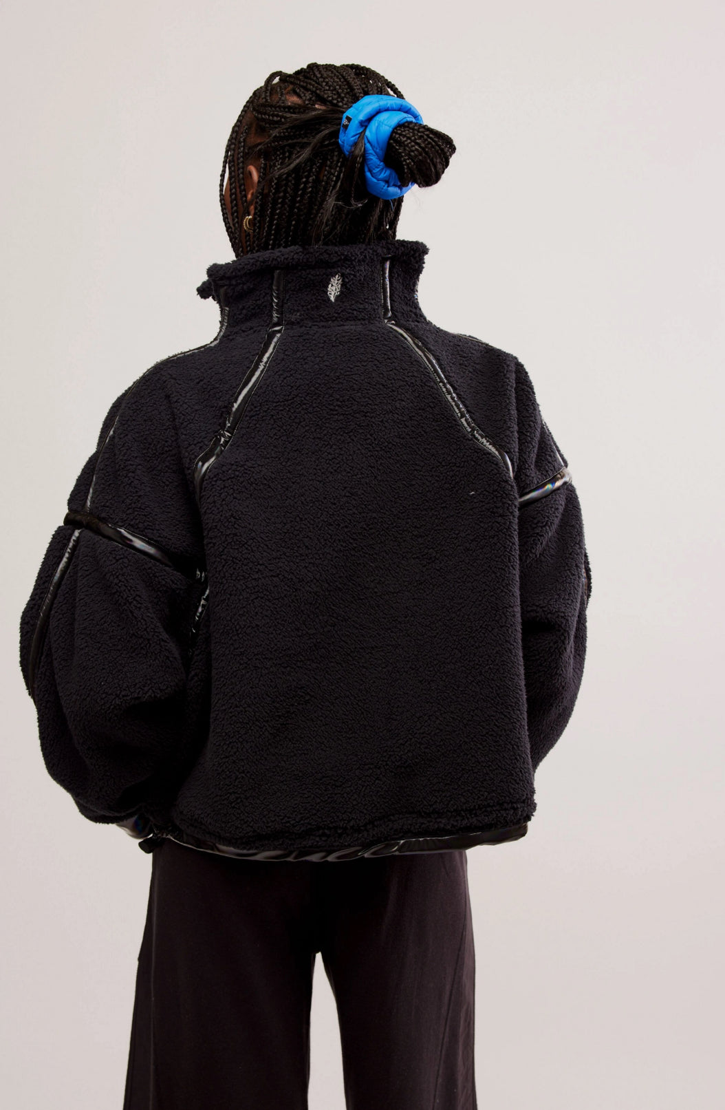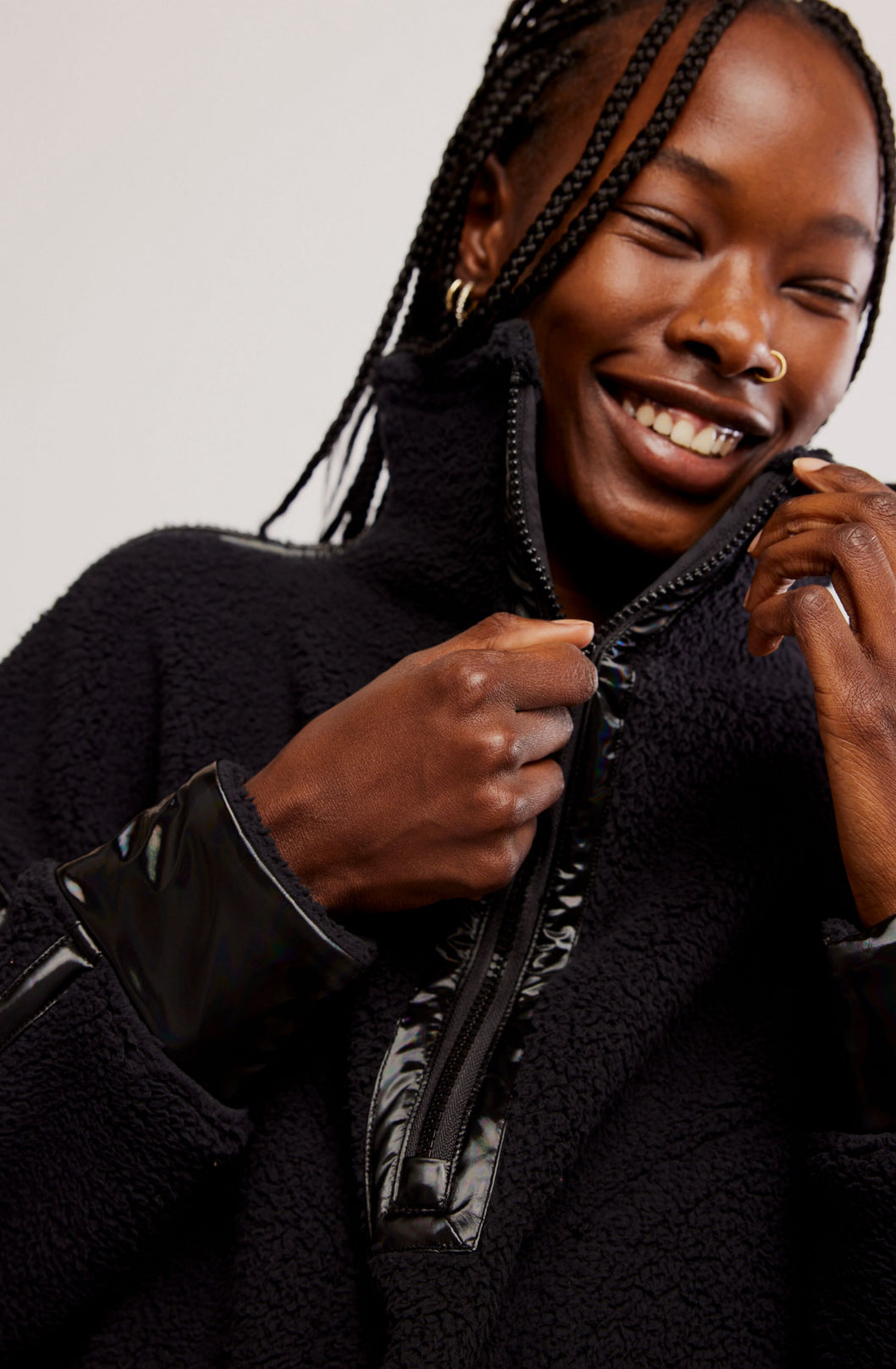 Take your layer game to the next level with this effortlessly essential half-zip featured in a slouchy, relaxed fit and stunning sherpa fabrication with contrast piping at hems for the ideal sporty finish.