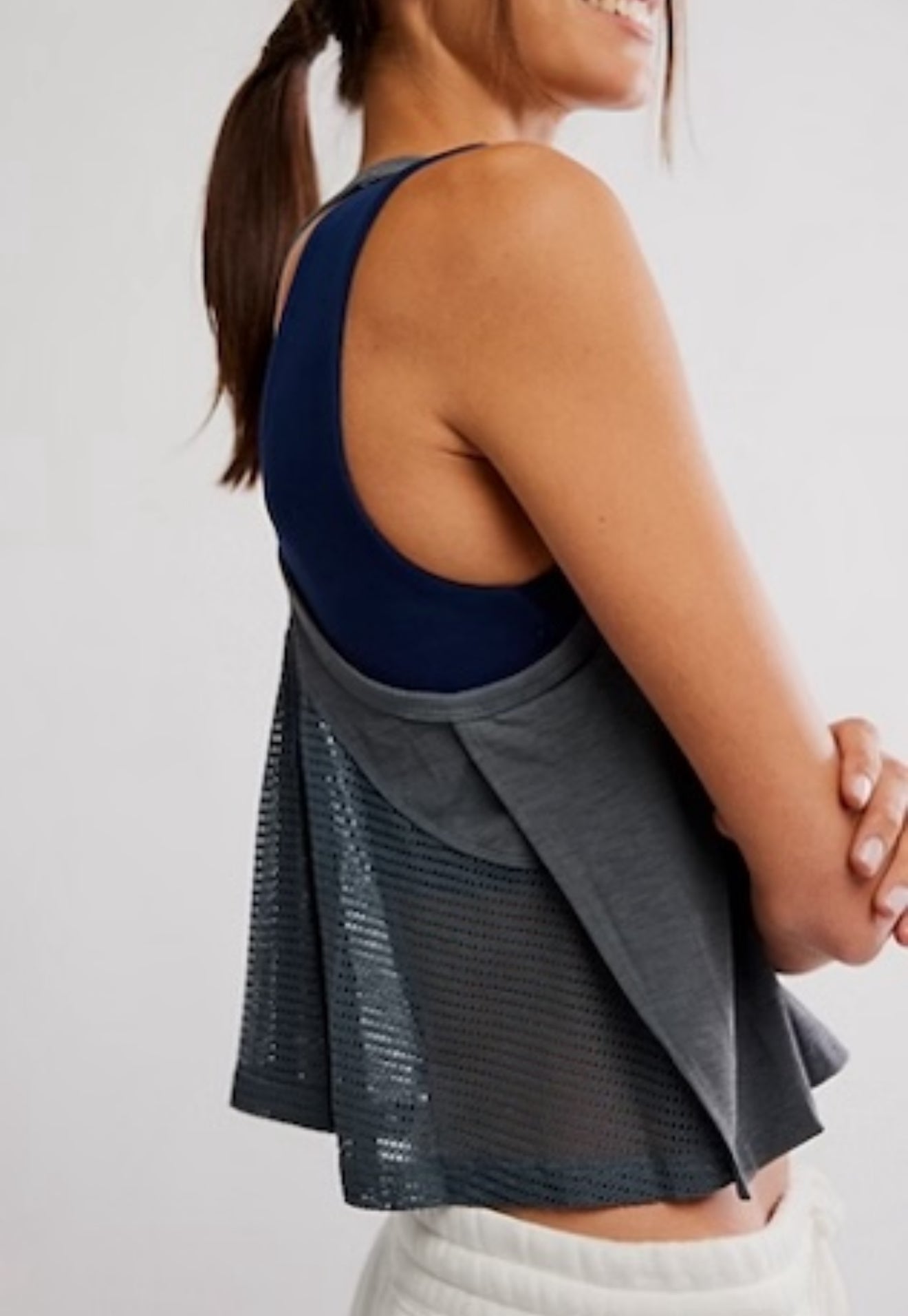Effortlessly elevate your tank rotation with this ready-for-anything top featured in a flowy, relaxed fit with mesh back piecing and slits at sides for the perfect fit and finish.