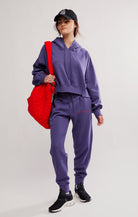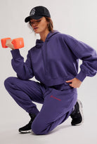 Level up your cool and casual wardrobe rotation with this effortlessly essential set featuring a slightly cropped, relaxed-fit hoodie top with coordinating high-rise tapered sweatpants for the perfect done-in-one look no matter the activity.