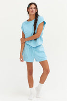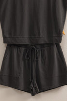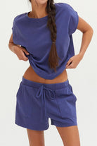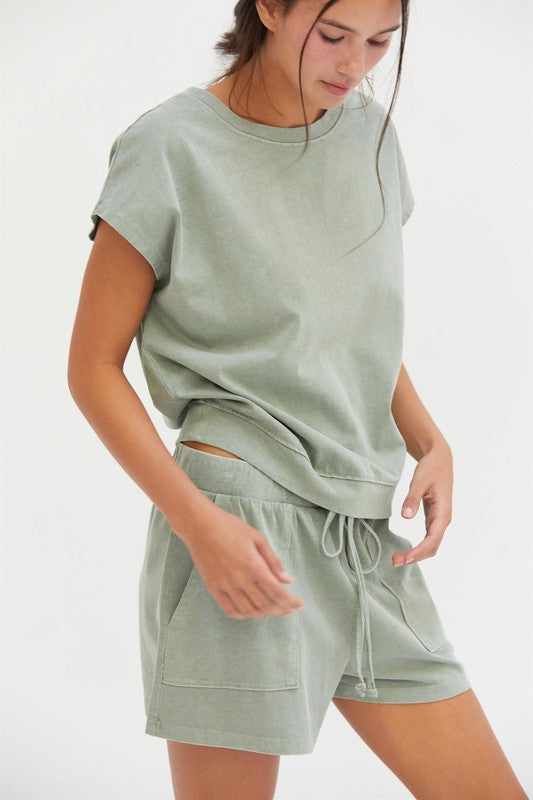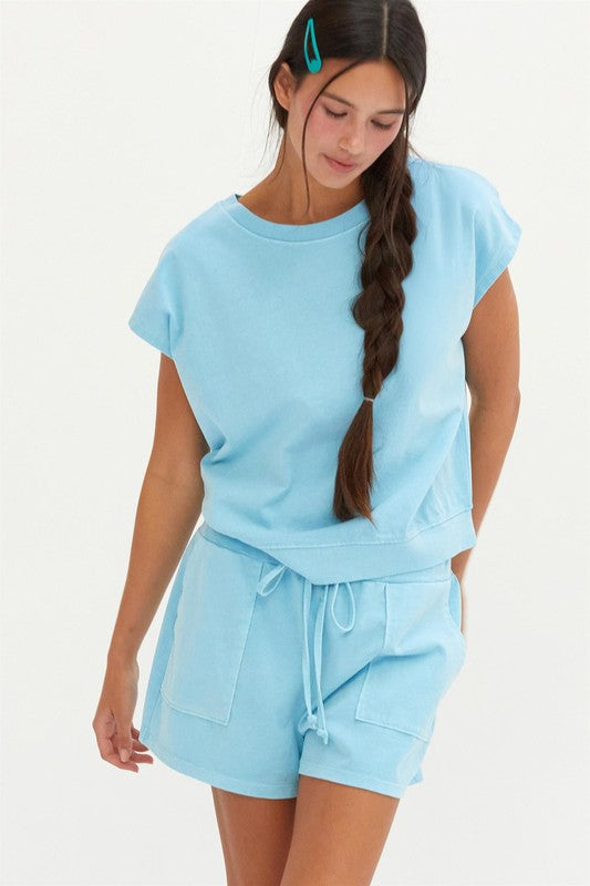 The Top Offers A Relaxed Fit With A Round Neckline And Short Dolman Sleeves. Matching Shorts Have An Elasticized Waist And Two Front Pockets. Style Together Or Wear Separate.
