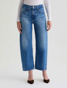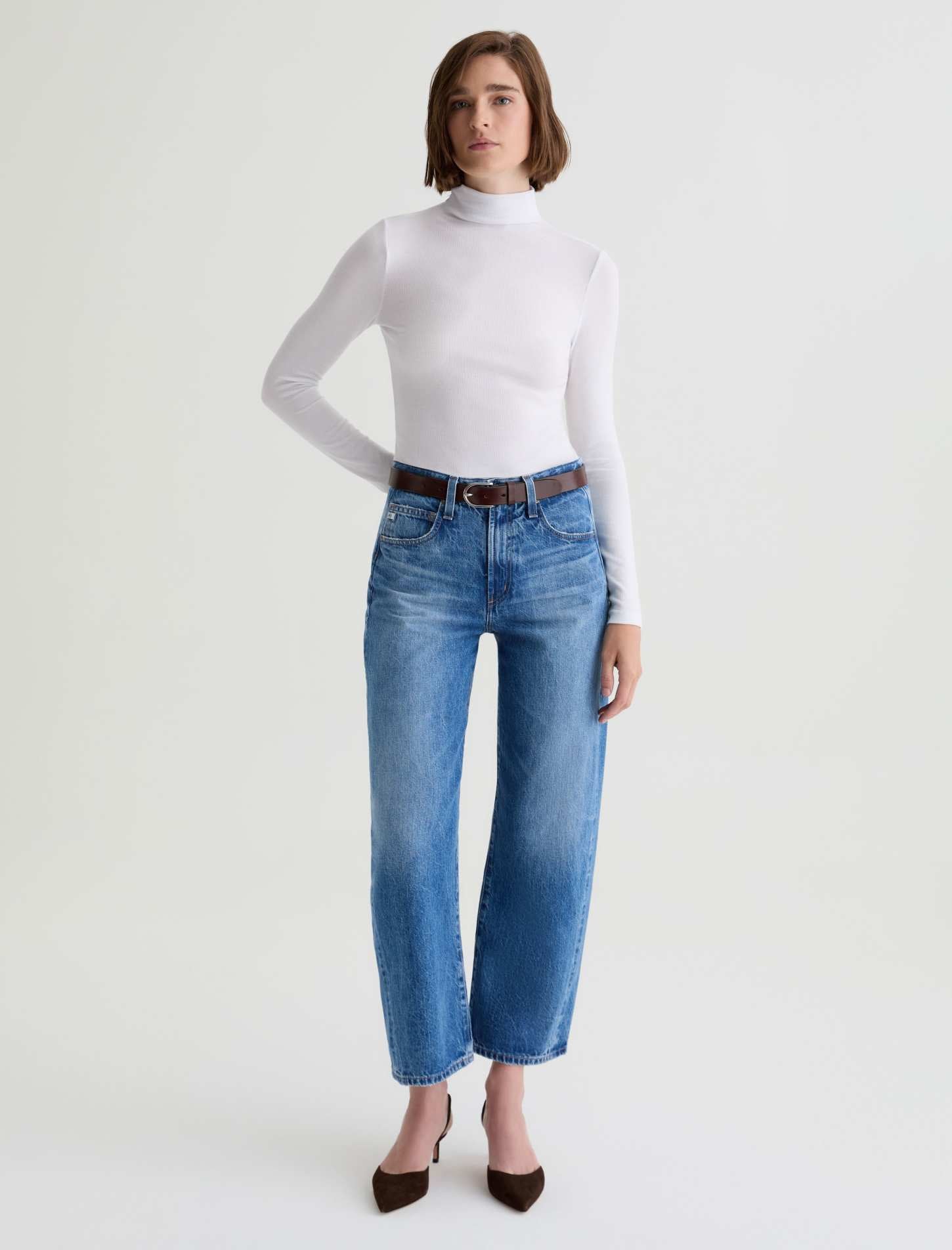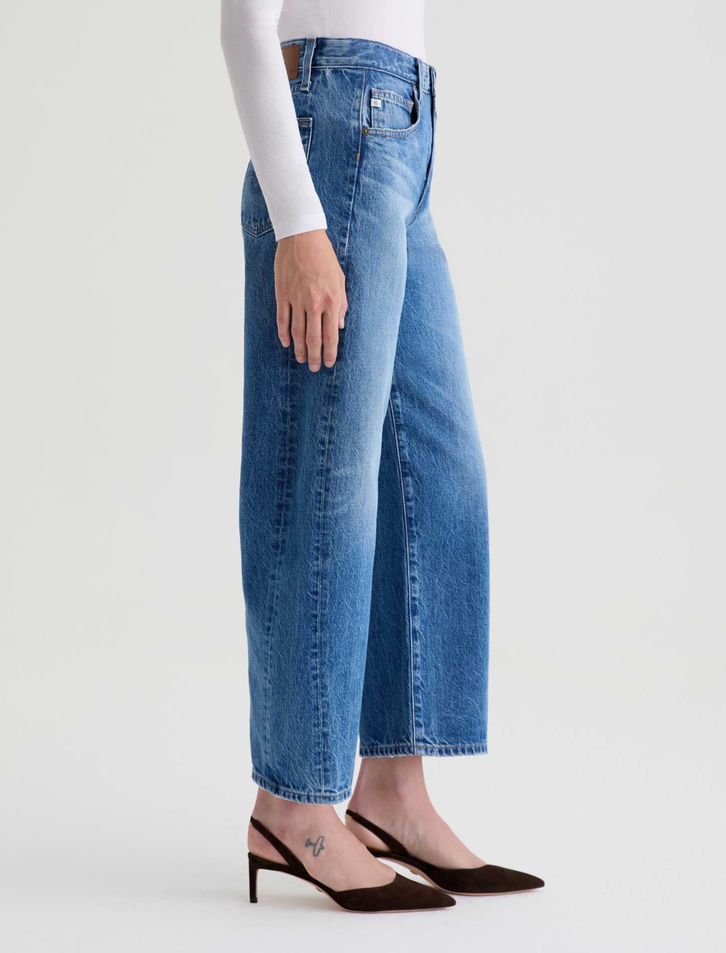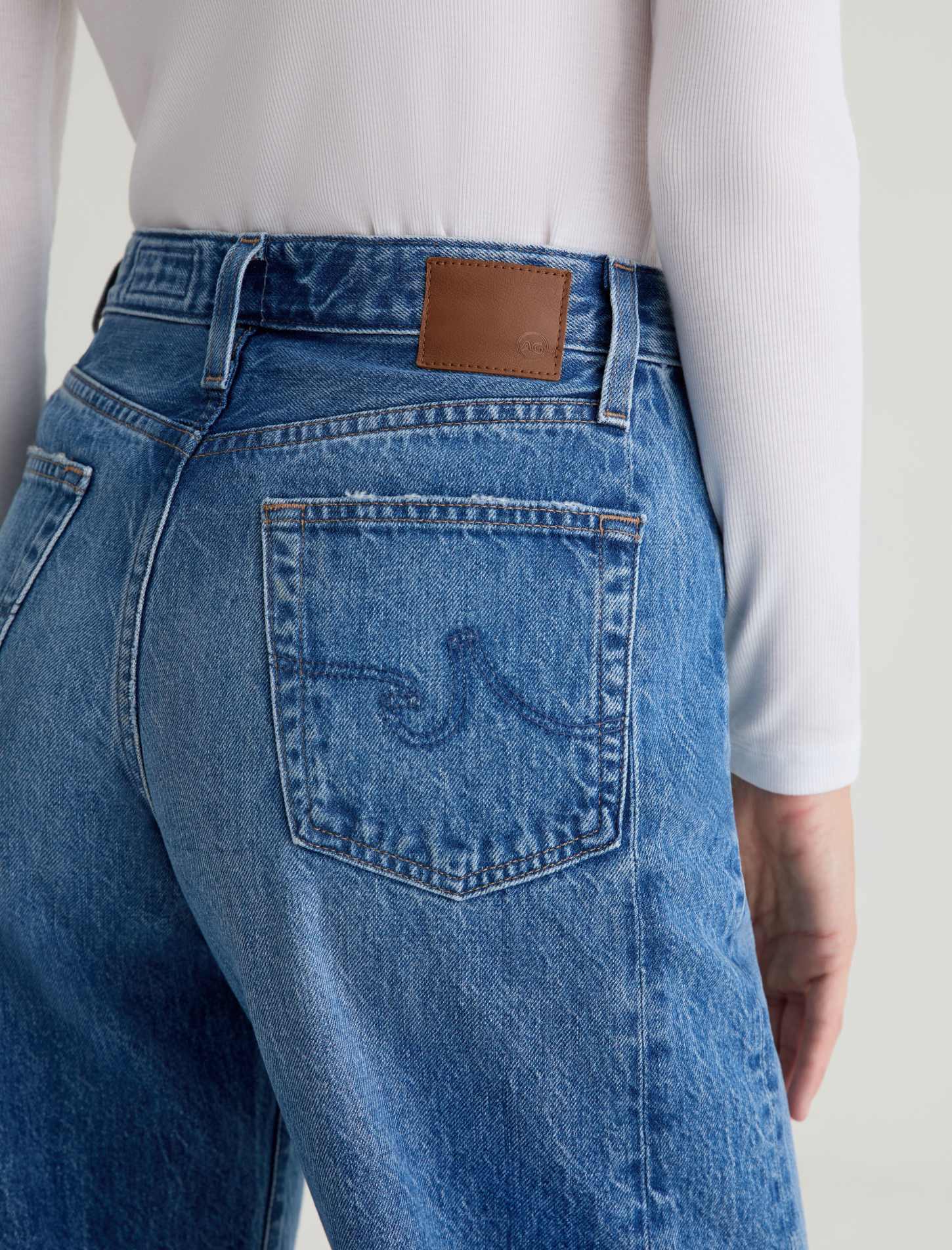 Hattie is a fashion-forward barrel leg with a high rise and a subtle curved silhouette, defined by side seam paneling. Cropped at the ankle with a wide opening, it's crafted from 13 oz. Sioux Rigid Denim. Designed with classic five-pocket styling and premium construction for everyday wear.