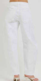 The Avery Barrel Jean combine effortless style with figure-flattering comfort. Designed with a built-in tummy control panel, these pants smooth and support your midsection while maintaining a relaxed, slouchy fit. The barrel-leg silhouette tapers slightly at the ankle for a modern, chic shape, making them perfect for pairing with sneakers, heels, or flats. Crafted from soft, structured fabric with just the right amount of stretch, these pants offer all-day comfort without sacrificing style.