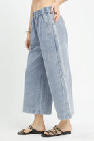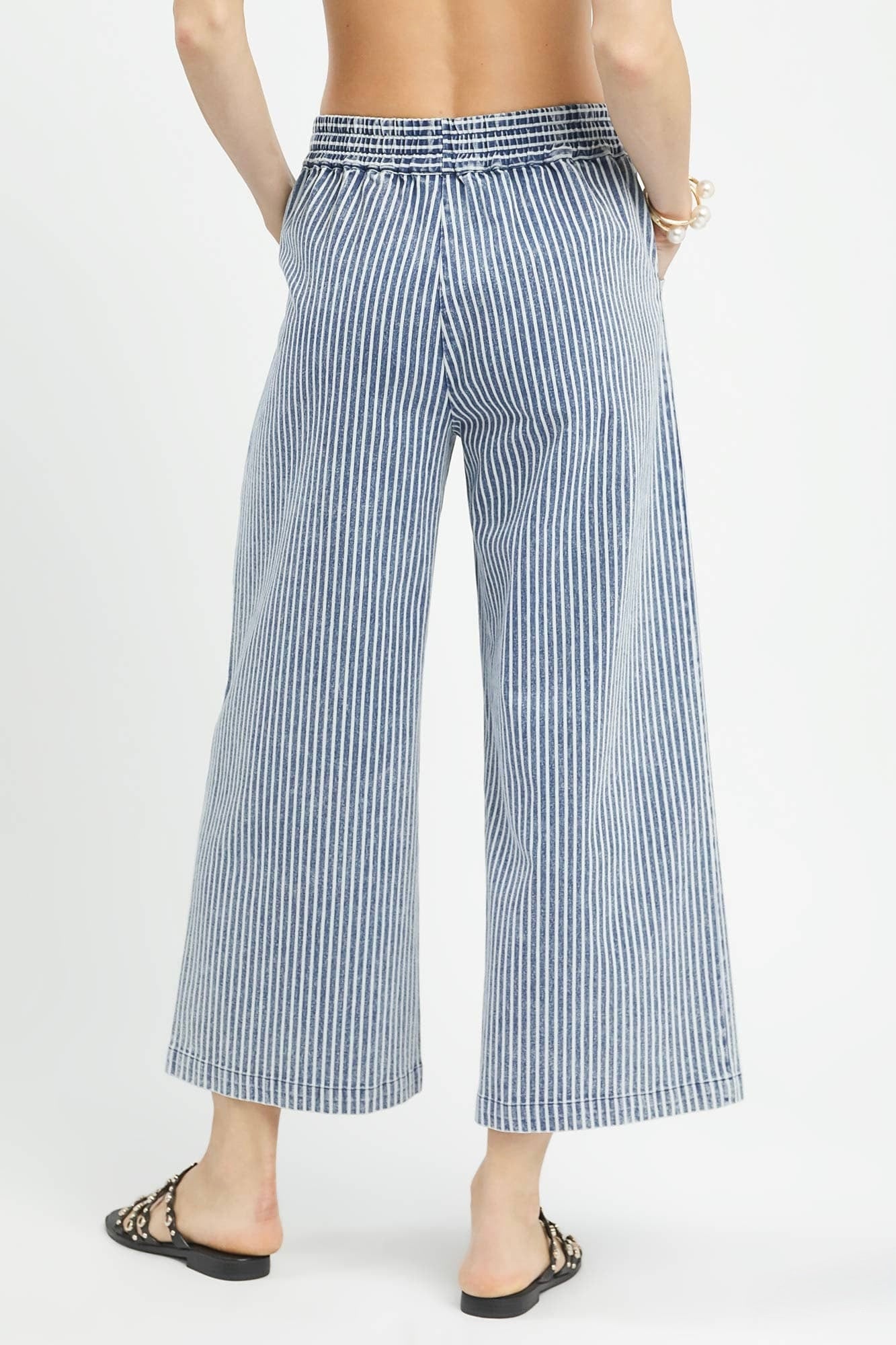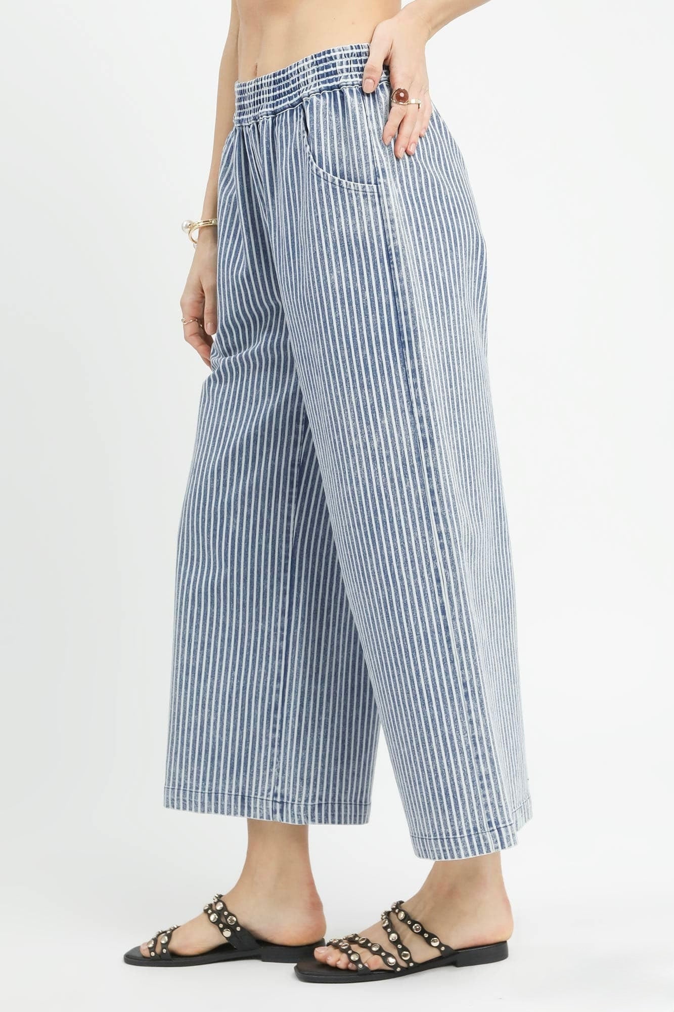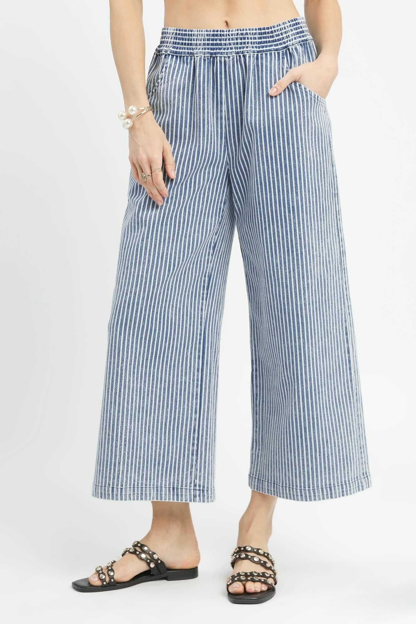 Step into effortless style with these stone wash stripe wide-leg pants, designed for comfort, movement, and a laid-back elevated look. The vertical stripes elongate the legs beautifully, while the wide-leg, relaxed silhouette keeps your outfit feeling cool and easy. Finished with practical side pockets and crafted without lining for a naturally lightweight feel, these pants are perfect for everyday wear.