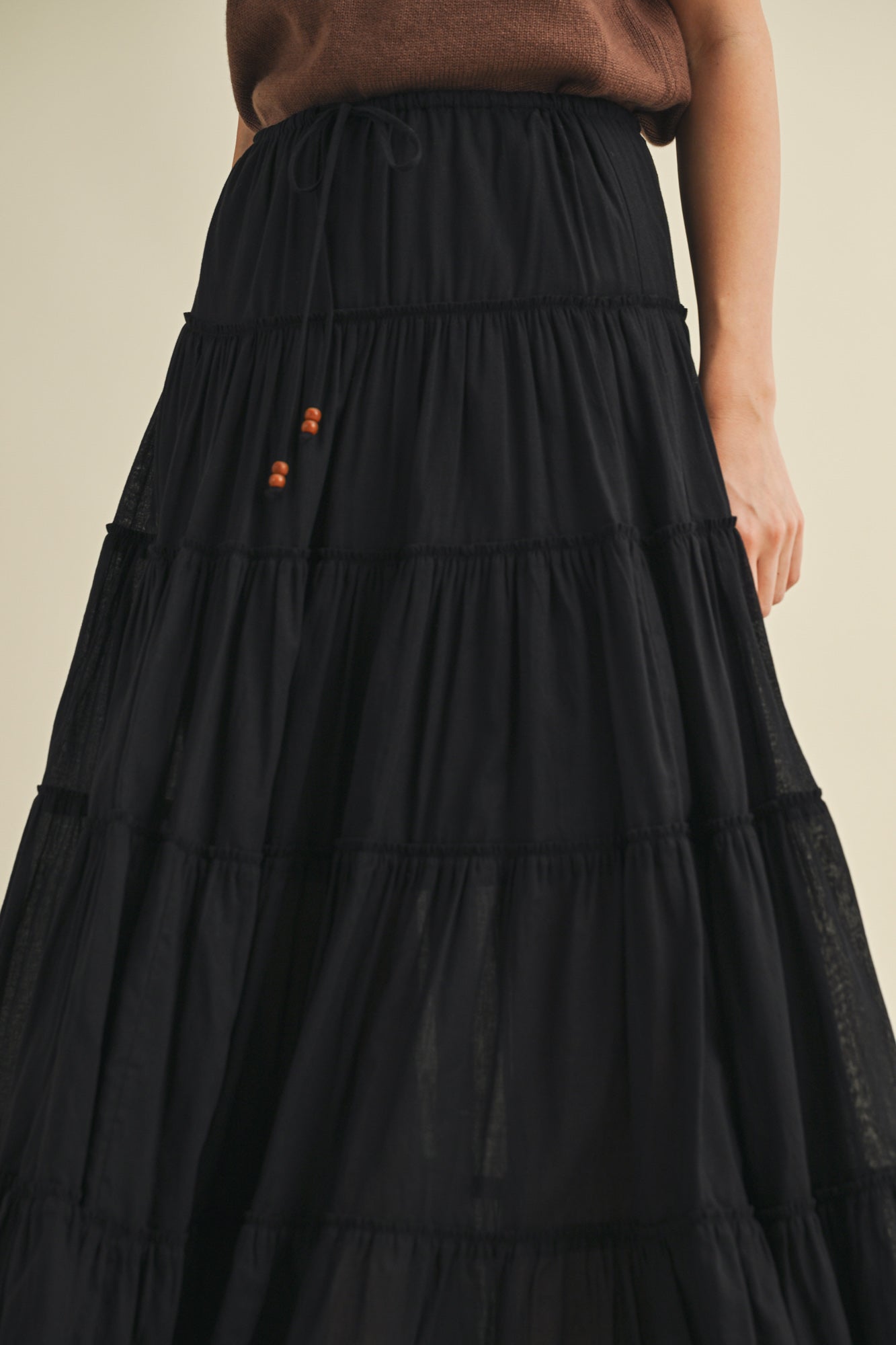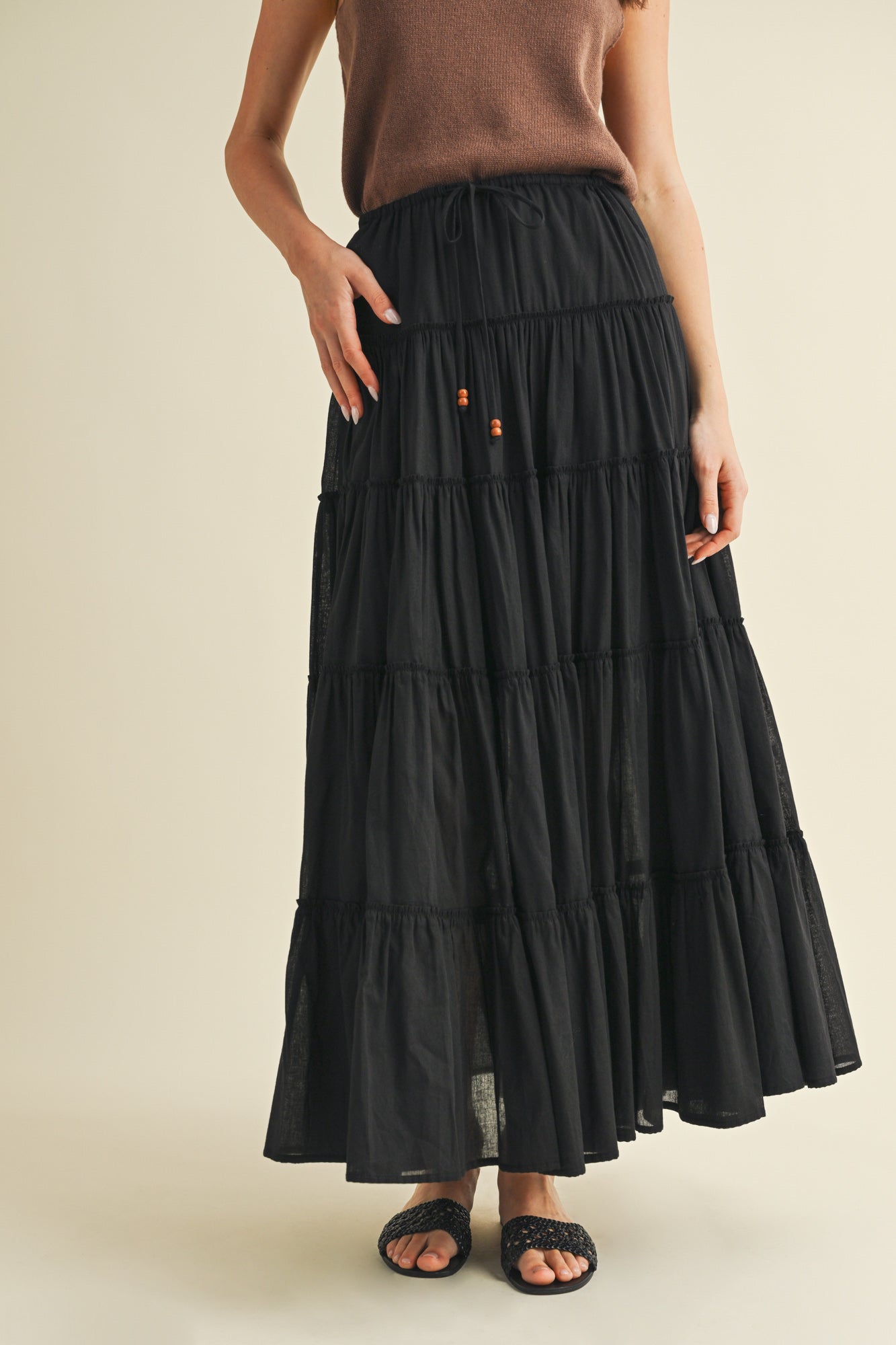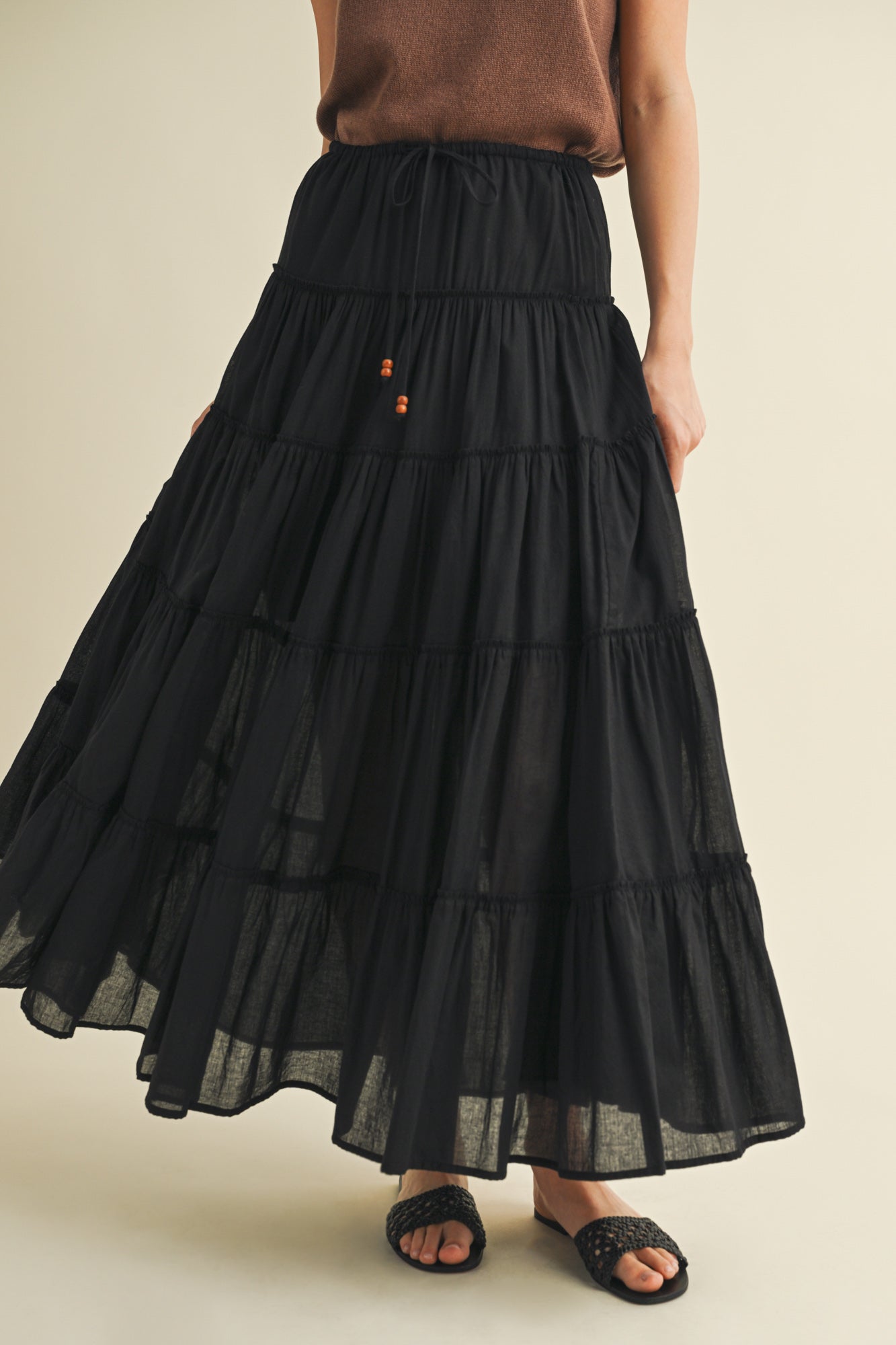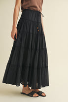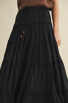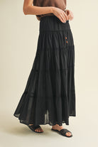 This black & mocha drawstring-tiered broom skirt brings effortless boho vibes to your wardrobe. Designed with a flattering drawstring waist for a customizable fit, it flows into multiple tiers that create a breezy, feminine silhouette. The earthy mocha hue makes it an easy neutral that pairs beautifully with everything from chunky knits to tucked-in blouses. Style it with boots and a jacket for fall, or keep it casual with sandals and a simple tank—this skirt is as versatile as it is timeless.