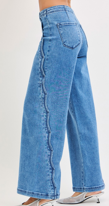 Elevate your everyday style with our Breezy Scallop Wide Leg—where modern sophistication meets playful charm. These pants feature a flattering high-rise fit that cinches the waist and elongates the legs, paired with a flowy wide-leg silhouette for effortless movement and comfort. The delicate scalloped edge detail adds a subtle, feminine touch that sets these pants apart from the ordinary. Perfect for brunch dates, office chic, or weekend adventures, they’re versatile enough to dress up with heels or keep casual with sneakers or flats.
