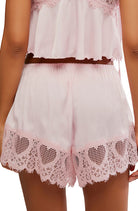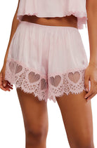 Add a little bit of love to your look with these romantic boxer shorts, designed in a relaxed, easy fit and finished with delicate heart-motif scalloped lace along the trim. Soft, lightweight, and effortlessly sweet — they’re perfect paired with an oversized sweater and boots for that cozy-cute vibe we’re all obsessed with.