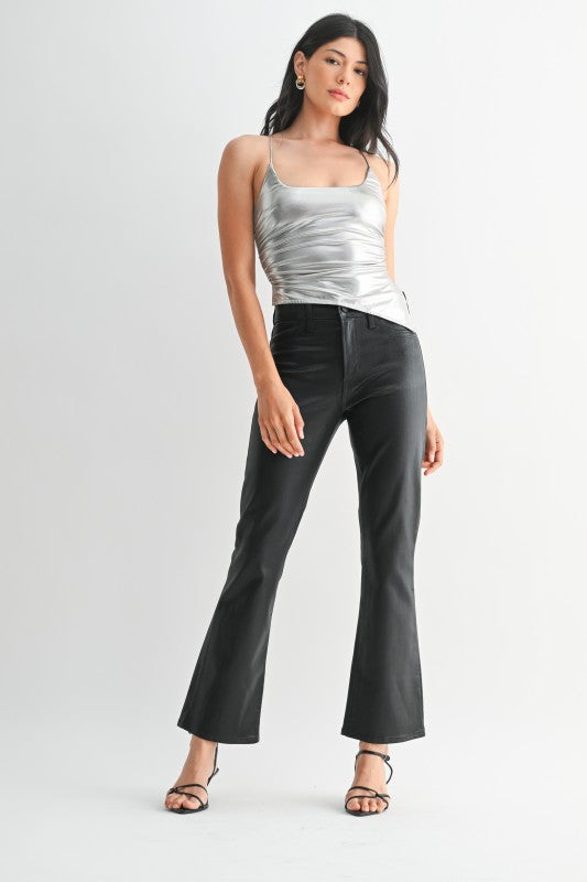 Sleek and versatile, these black jeans feature a slim, cropped boot cut that elongates the legs while giving just the right amount of flare at the hem. Designed with a flattering fit that hugs in all the right places, they’re the ultimate go-to denim for everything from casual days to a night out.