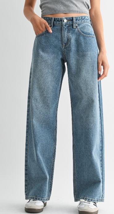 This non-stretch jean features a relaxed, baggy fit that sits at the waist and drapes into a roomy wide-leg silhouette, offering a laid-back, effortlessly cool vibe. Finished in a classic medium wash, it strikes the perfect balance between lived-in ease and everyday polish.