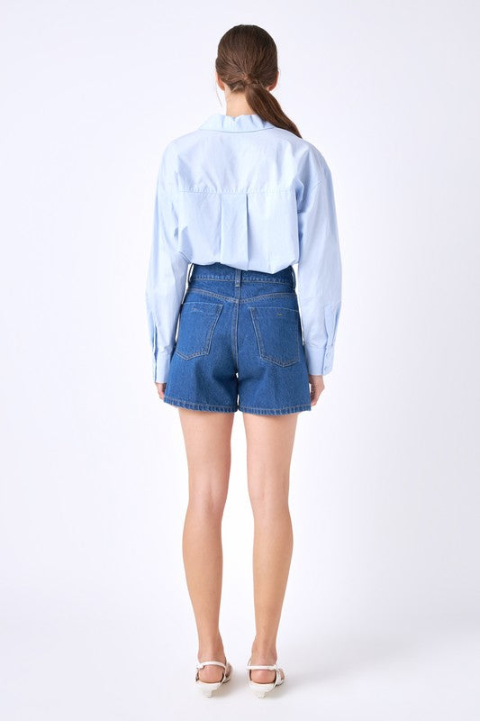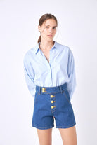 Meet your new favorite denim piece by English Factory! These high-waisted jeans combine classic style with a little extra flair. Featuring a chic button fly with gold buttons and a structured waistband, they’re as flattering as they are stylish. The front pleated details add a touch of sophistication, while the slash pockets and back pockets give you all the practicality you need. Perfect for dressing up or down, these jeans are a must-have for any denim lover’s closet!