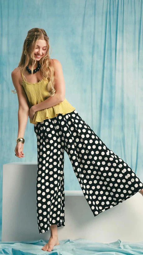Make a bold statement with The Ruby Dot Wide-Legs — where playful meets polished. These flowy, wide-leg pants feature a vibrant white base sprinkled with classic red polka dots for a vintage-inspired twist. Designed with a high waist and a relaxed fit, they offer all-day comfort without sacrificing style. Whether you’re dressing them up with heels or keeping it casual with sneakers, these pants are ready to turn heads wherever you go.